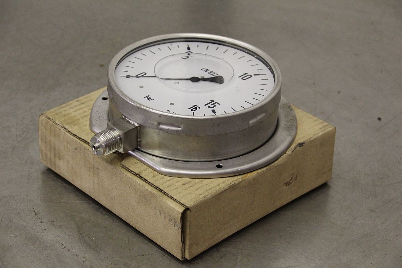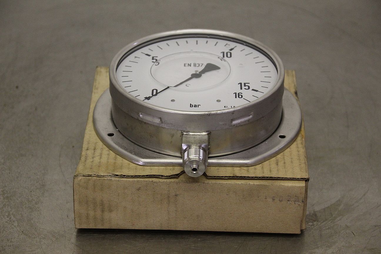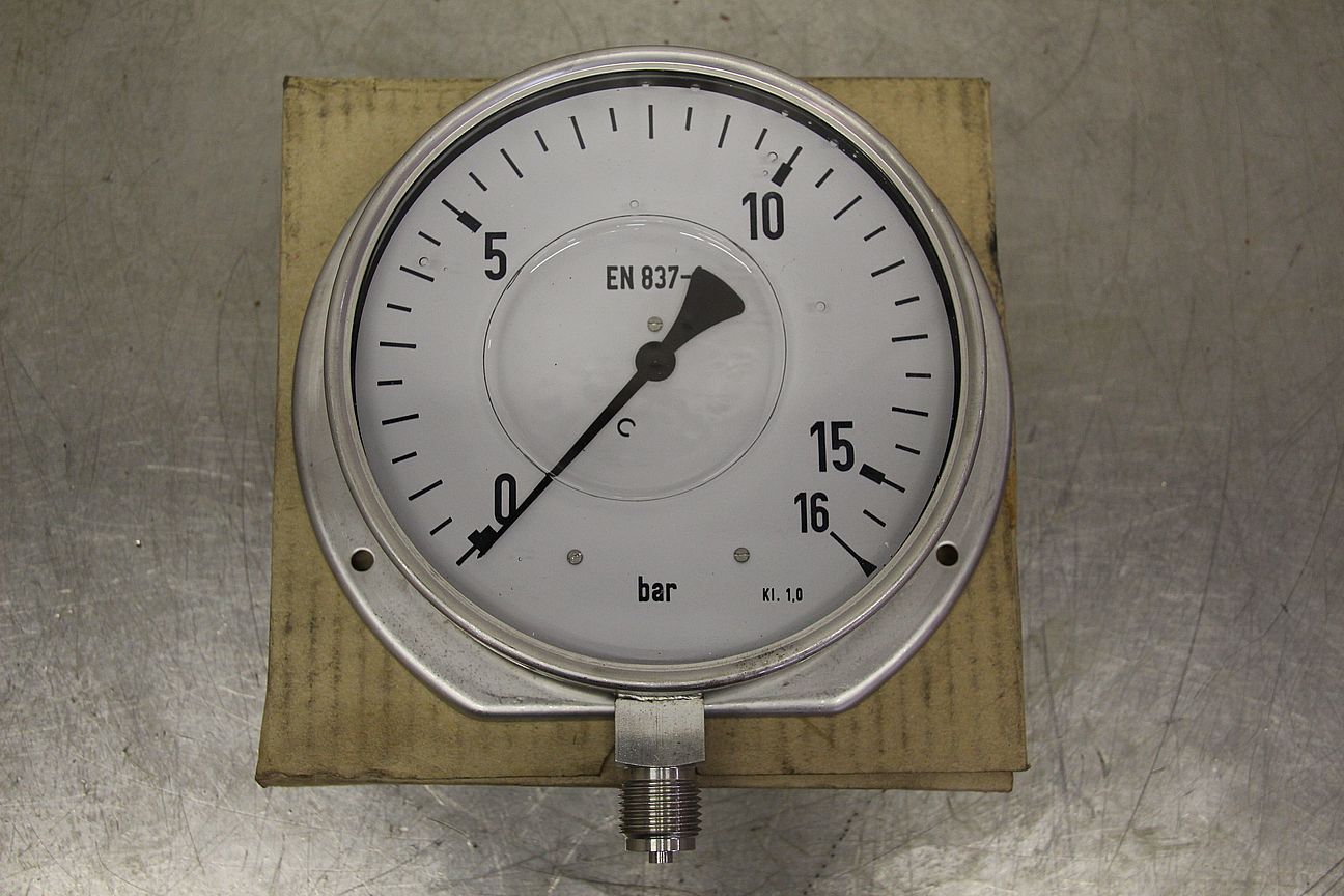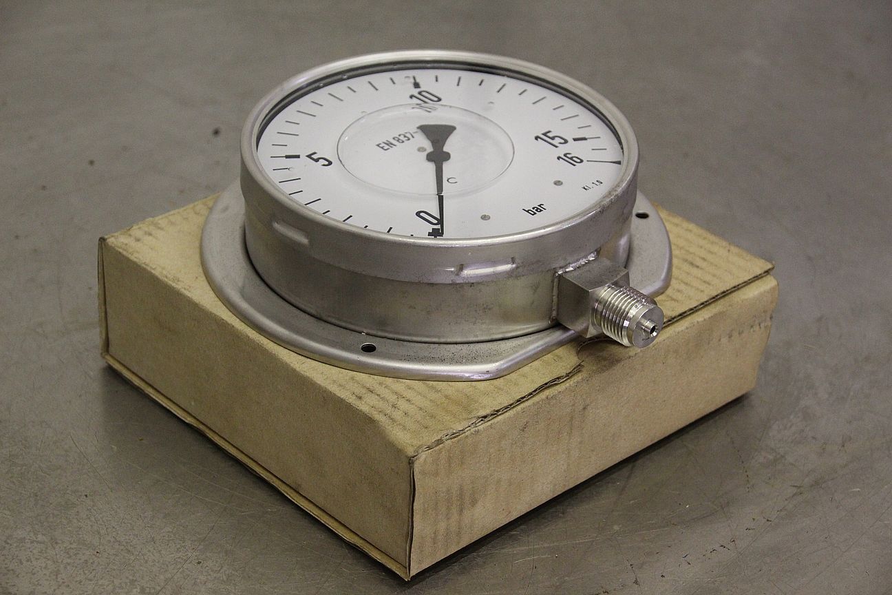 Manometer, test manometer, pressure measuring device with Bourdon tube, pressure-temperature measurement technology-Display: 0-16 bar-Standard: EN 837-1-Number: 3x manometers available-Price: per piece-Dimension box: 200/200/H60 mm-Weight: 2.1 kg