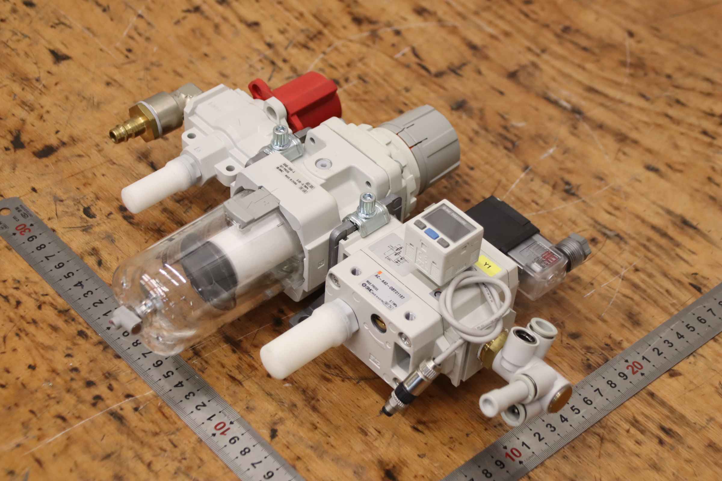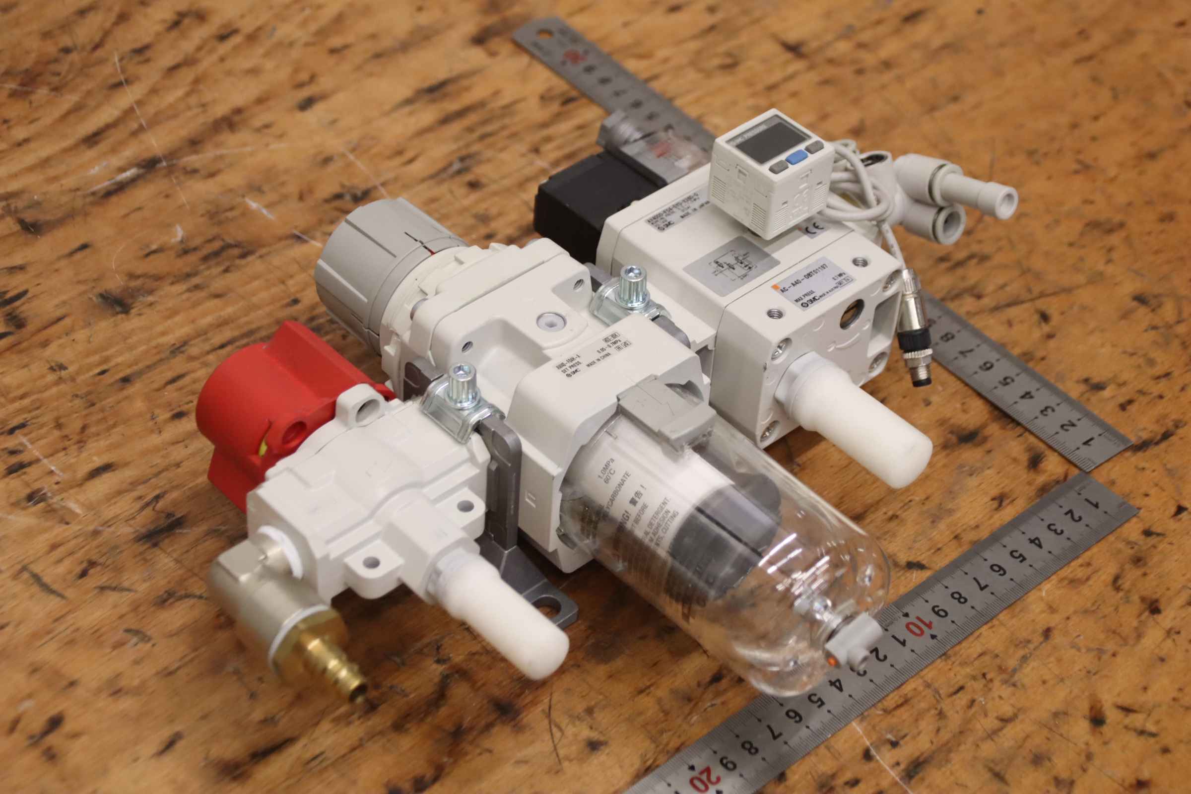Filter control valve, switching valve, maintenance unit, water separator, filter bowl, pneumatic filter, filter regulator, maintenance unit combination, filter control valve -Manufacturer: SMC, Maintenance unit filter control valve -Soft start valve: AV4000-F04-5Y0-X260-Q -Pressure switch: I SE30A-01-P -Filter control: AW40-F04H-A -Switching valve: VHS40-F04A -Individual components: see photos -Price/Fee: complete -Dimensions: 340/120/H250 mm -Weight: 2.3 kg