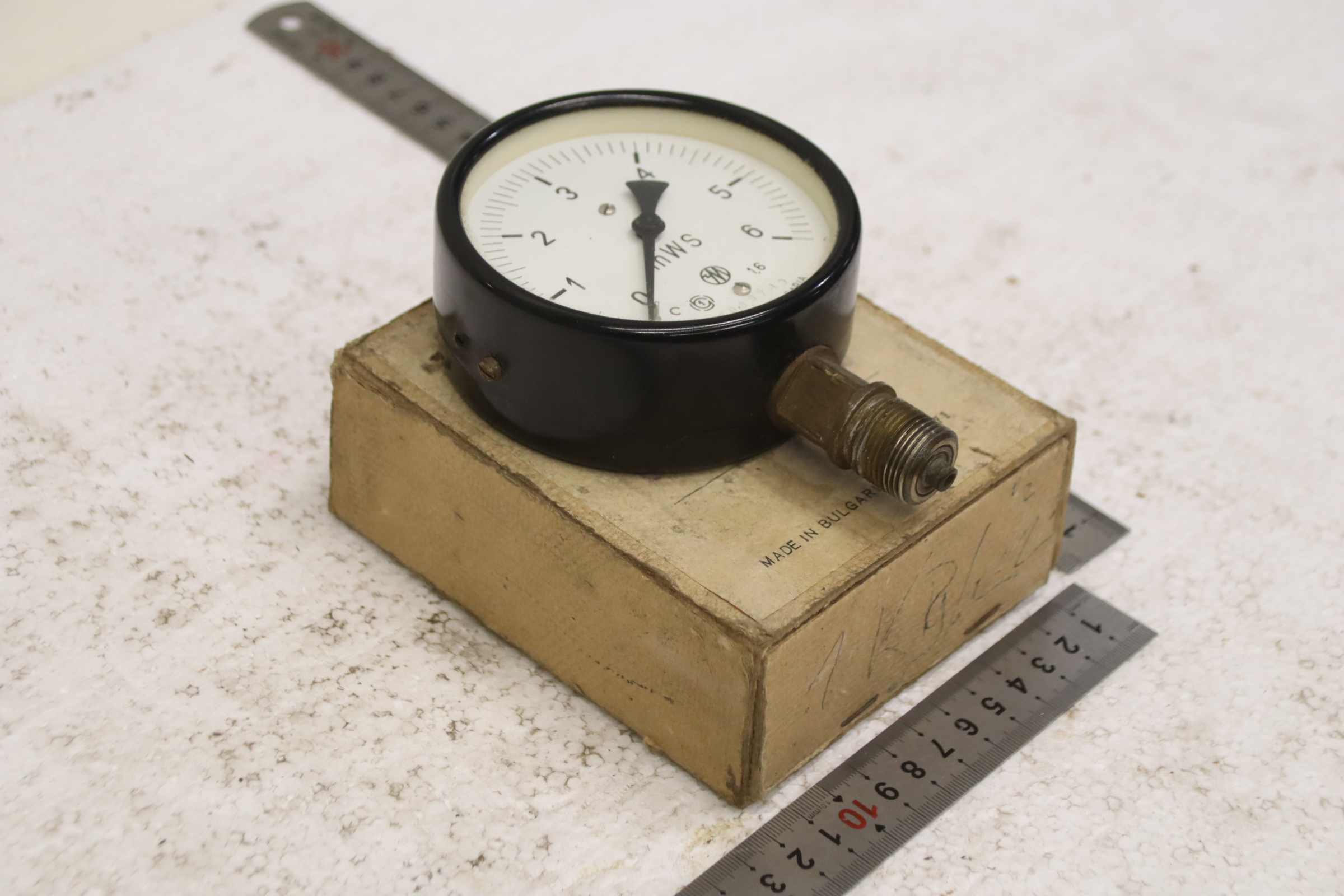 Manometer, test manometer, pressure gauge with Bourdon tube, pressure-temperature measuring technology, Bourdon tube manometer, pressure tester, pressure tester -Manufacturer: Elektron, Manometer: 0-6 mWS / 0-0.6 bar, unused, original packaging -Type: HD997A0 -Item No.: 6AC 5080-71 -Quantity: 1x pressure gauge available -Cardboard dimensions: 140/115/H50 mm -Weight: 0.7 kg