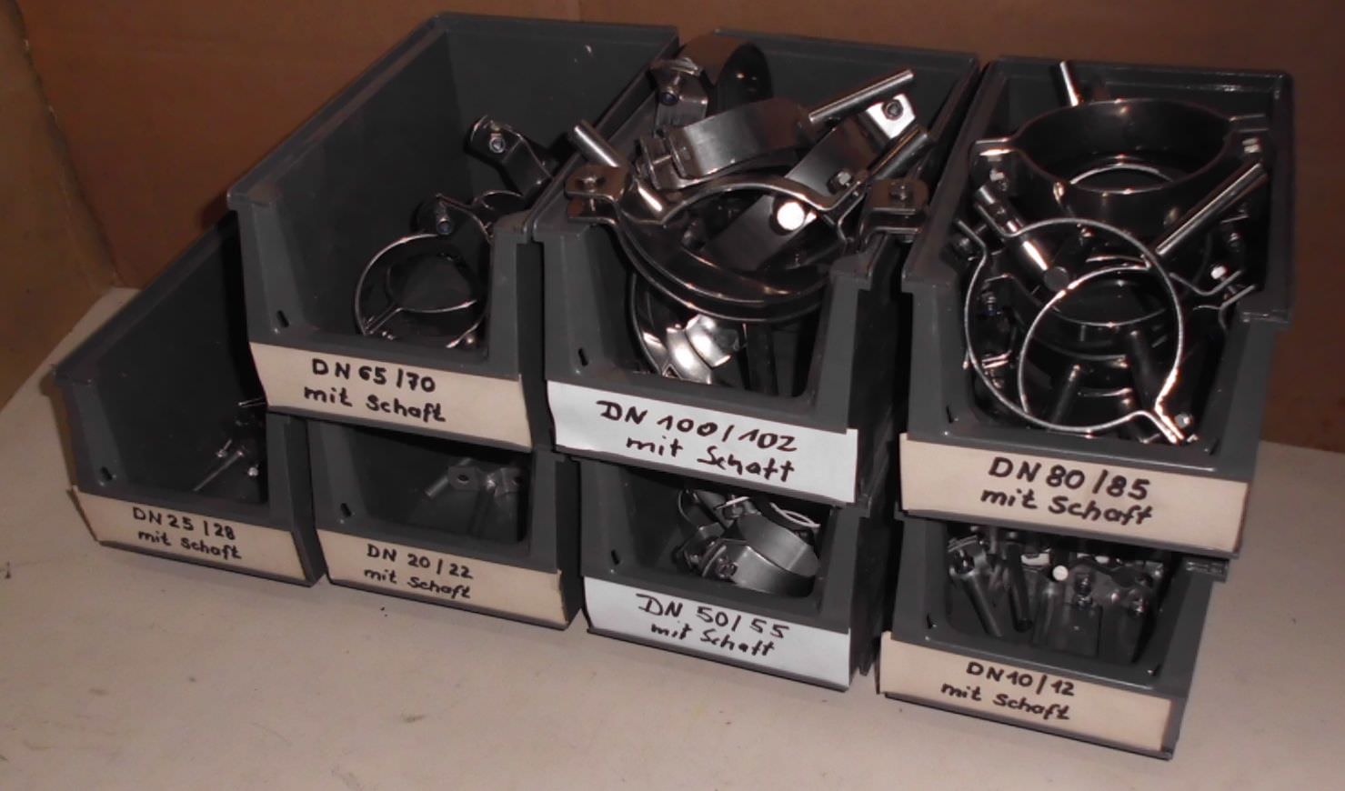 Screw clamps, pipe clamps, pipe fixings -DN: 20/22 -DN: 25/28 -DN: 32/34 -DN: 40 -DN: 50/52 -DN: 65/70 Price: complete Package weight: 21.5 kg