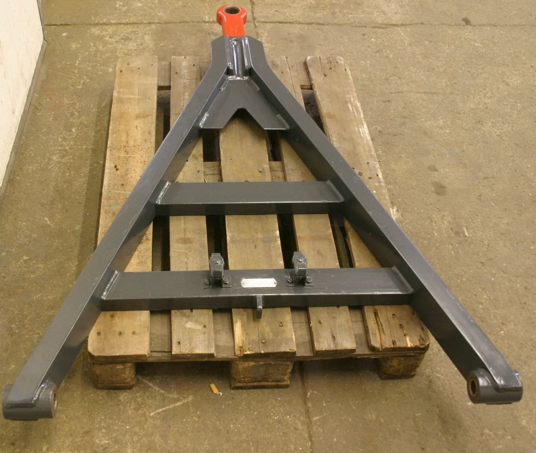 Drawbar, drawbar, overrun brake -Height-adjustable drawbar -crooked -with overrun brake -Support load: 100 kg -Maximum permissible total weight: 1000 kg -Number: 12x drawbars available -Price: per piece -Weight: 40 kg