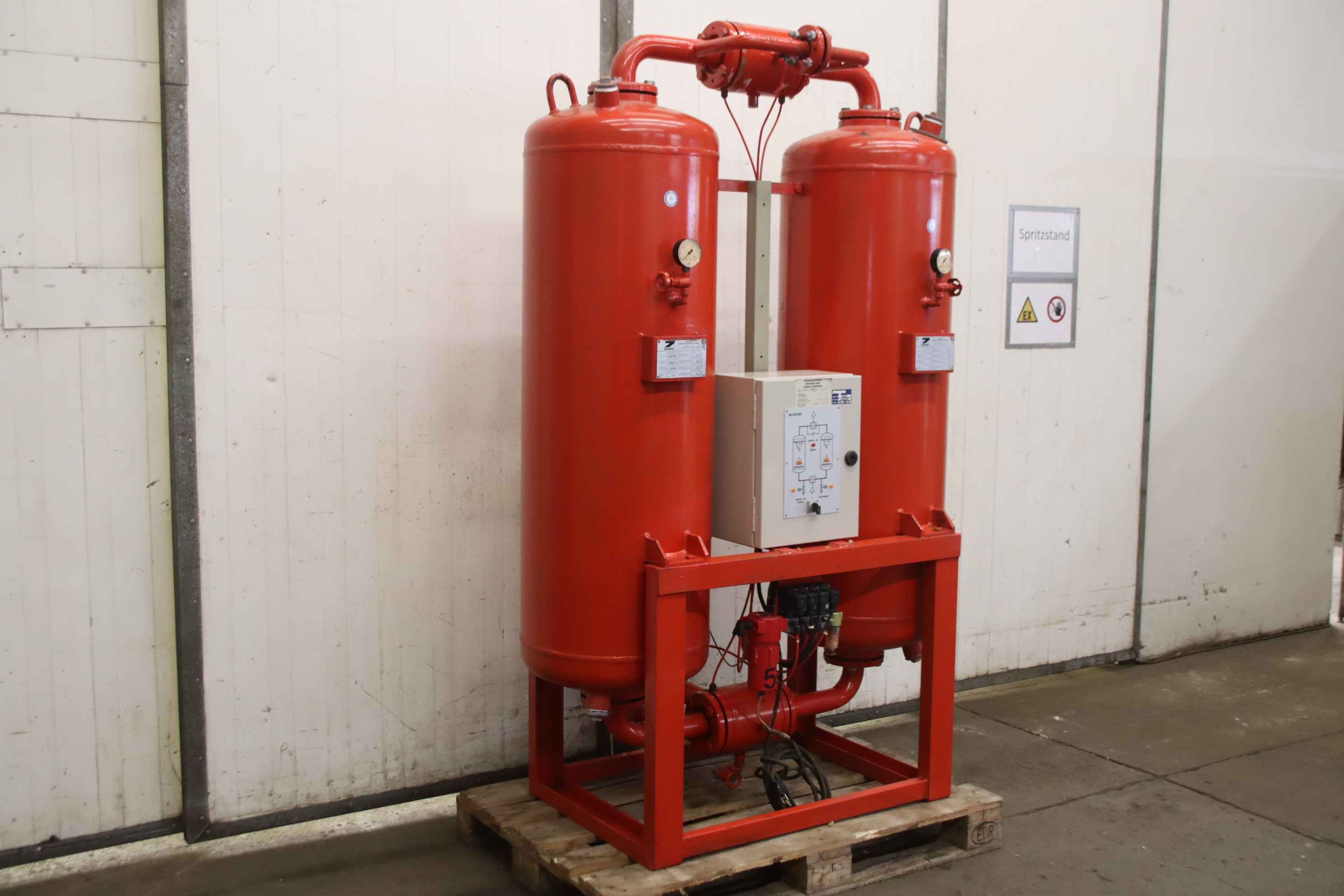 Granule dryer, compressed air dryer, granulate drying plant, adsorption dryer-Manufacturer: Zander, adsorption dryer type K1300MS-Operating pressure: 7 bar, max. 16 bar-Container capacity: 200 litres each-Individual components: see photos-Transport dimensions: 1250/750/H1960 mm-Weight: 684 kg