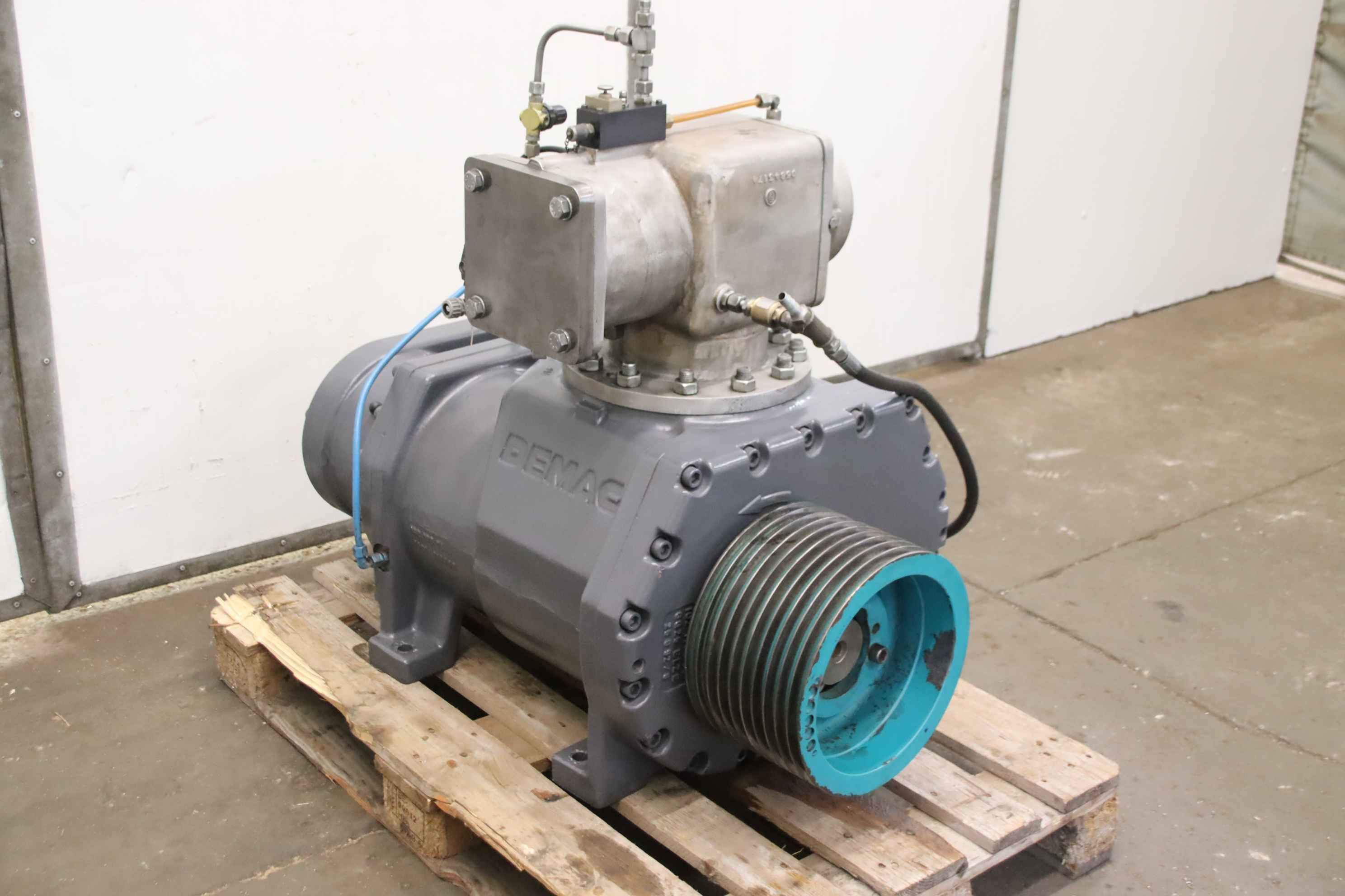 Screw compressor, compressor, compressed air unit, stationary compressed air compressor-Manufacturer: Demag / CompAir, screw compressor type 350WS / EK285NK without drive motor-Volume flow: 35.1 m³/min-Max. pressure: 7 bar-Drive shaft: Ø 90 x 120 mm-Individual components: see photos-Dimensions: 1100/670/H1000 mm-Weight: 1032 kg