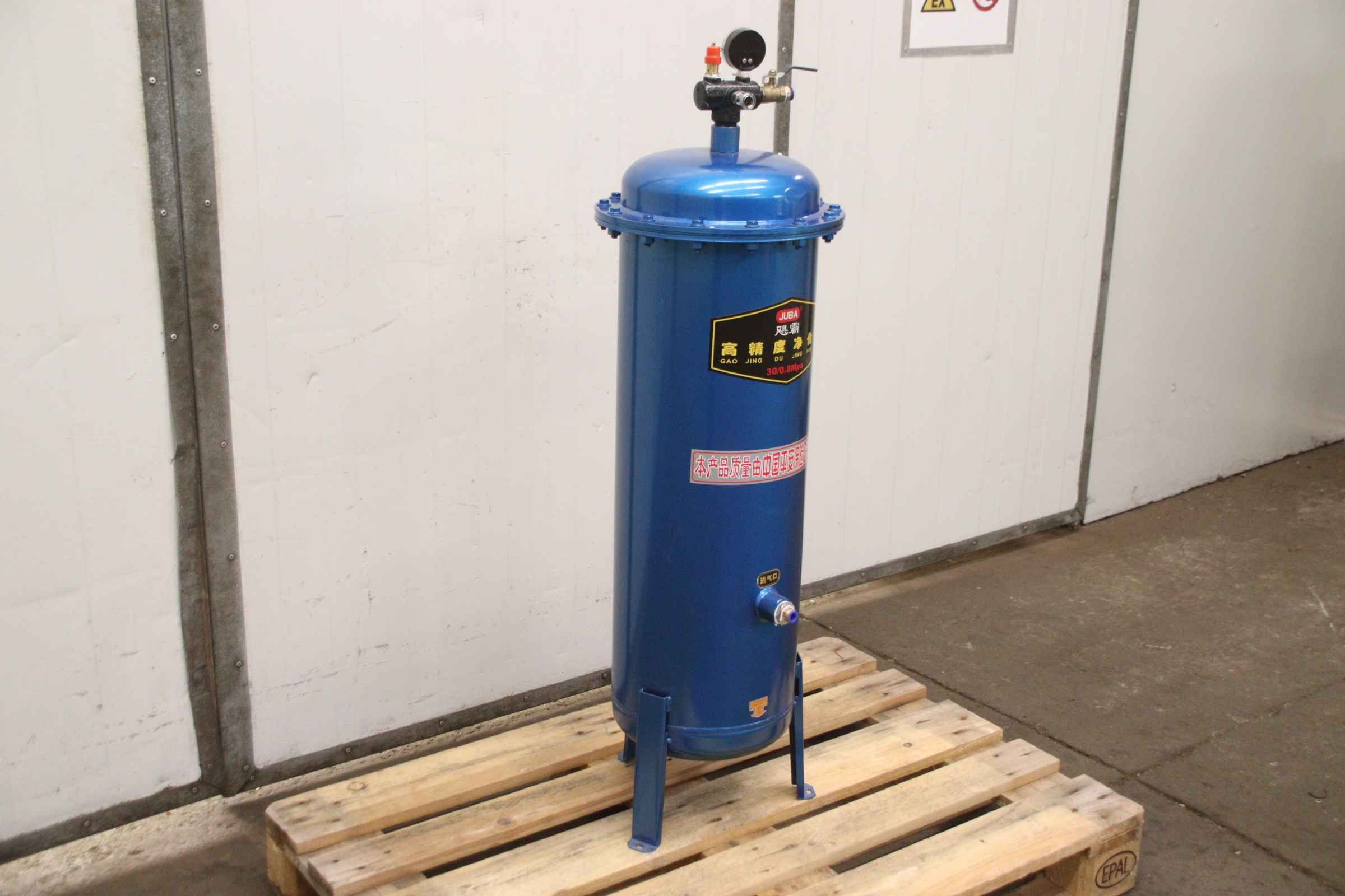 Oil-water separation system, condensate separator, oil and water separator, oil separator, oil/water separator, air compressor oil-water separator -Manufacturer:BEKO, air compressor oil-water separator -Type: 30/0.8Mpa -Dimensions: Ø 360 x 1220 mm -Weight: 24 kg