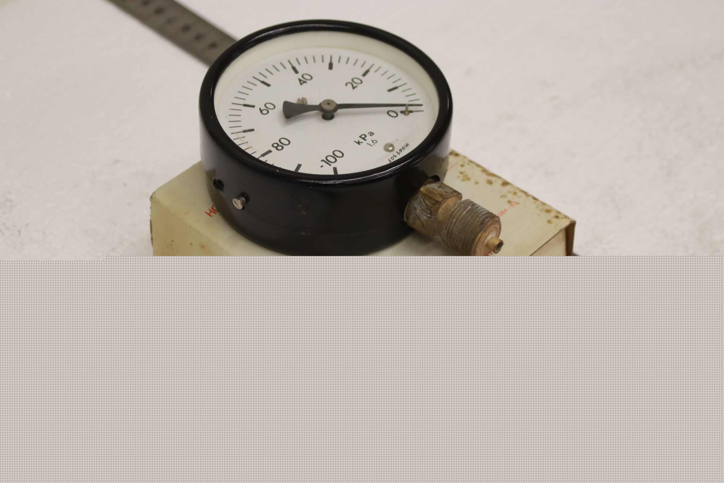 Manometer, test manometer, pressure gauge with Bourdon tube, pressure-temperature measuring technology, Bourdon tube manometer, pressure tester, pressure tester -Manufacturer: Elektron, Manometer: -100-0 kPa / -1-0 bar, unused, original packaging -Size: Ø 100 mm -Number: 18x pressure gauges available -Price: per piece -Cardboard dimensions: 135/110/H50 mm -Weight: 0.5 kg/pc.