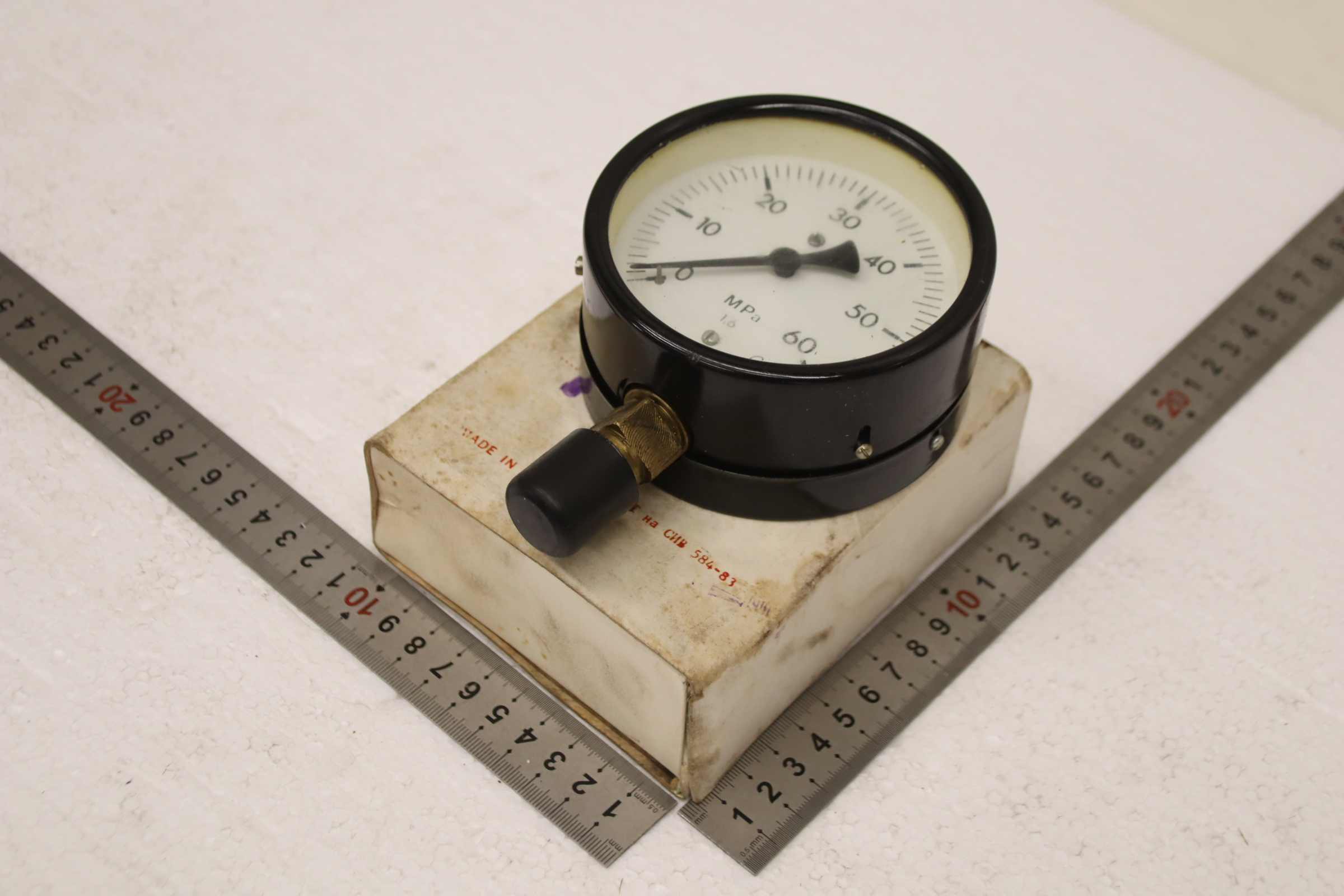 Manometer, test manometer, pressure gauge with Bourdon tube, pressure-temperature measuring technology, Bourdon tube manometer, pressure tester, pressure tester -Manufacturer: Elektron, Manometer: 0-60 MPa / 0-600 bar, unused, original packaging -Size: Ø 100 mm -Number: 11x pressure gauges available -Price: per piece -Cardboard dimensions: 135/110/H50 mm -Weight: 0.7 kg/pc.