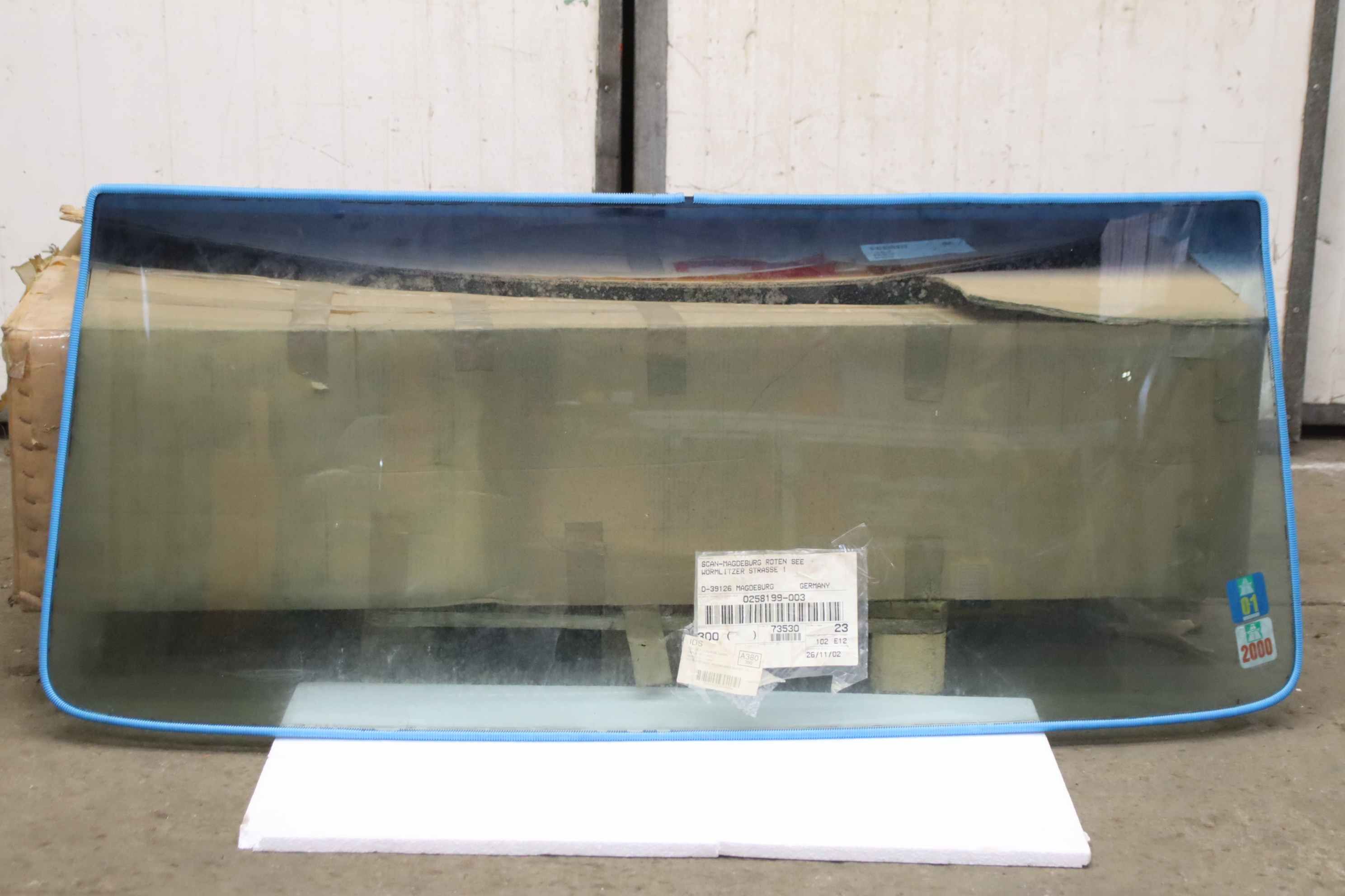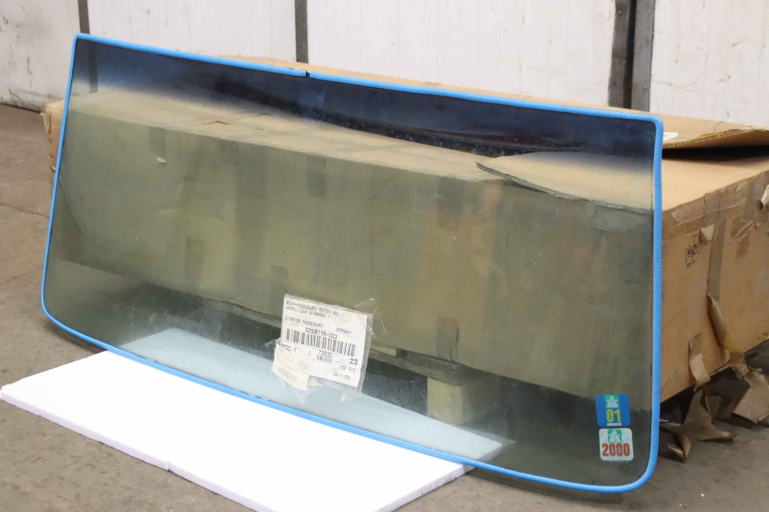 windshield, windshield-Manufacturer: Scania, windshield windshield-Order No.: 02581 99-003-Dimension: 1660/705/ thickness 7 mm-Weight: 16kg-Transport dimension: 1660/785/H390 mm