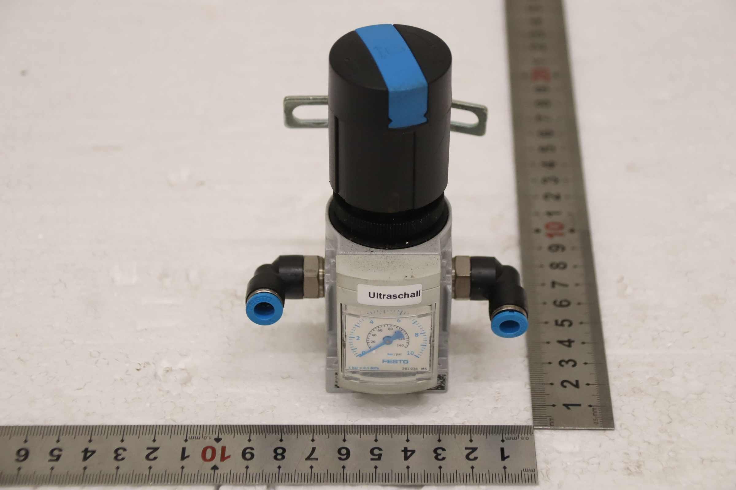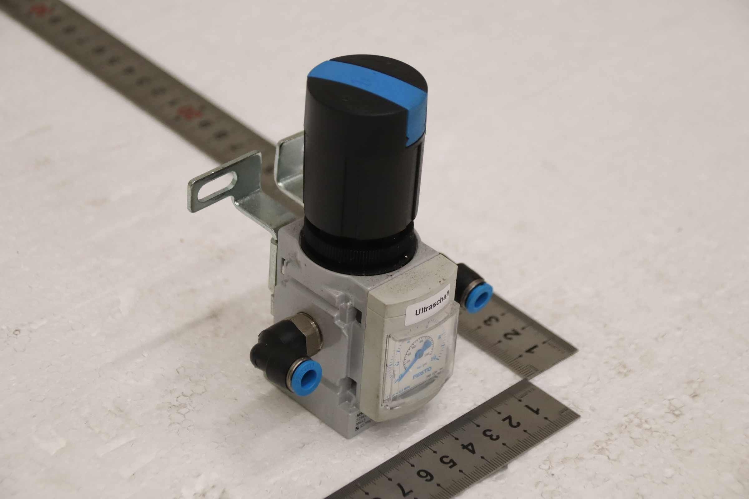 Pressure regulating valve, pressure regulating directional control valves -Manufacturer: Festo, pressure regulating valve -Type:MS4-LR-1/4-D7-AS -Operating pressure: 0-12 bar -Number: 7 valves available -Price: per piece -Dimensions: 140/100/H80 mm -Weight: 0.3 kg/pc.