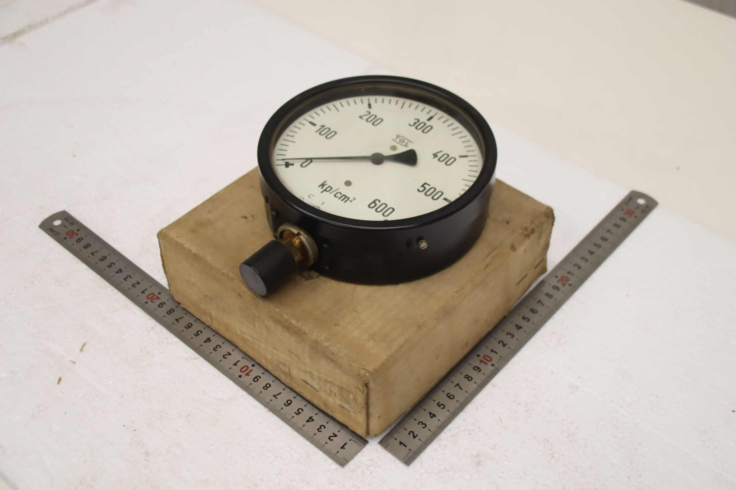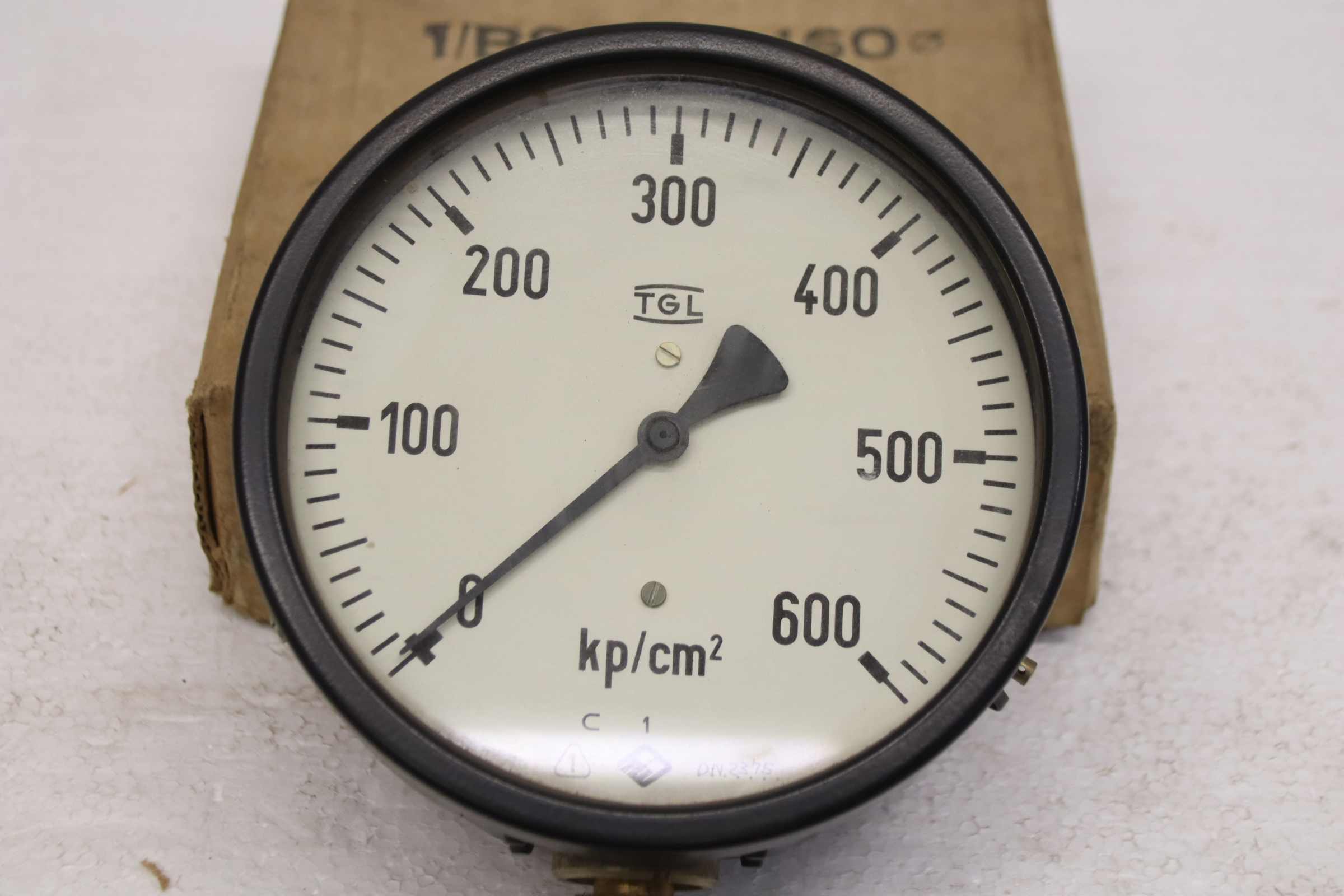 Manometer, test manometer, pressure gauge with Bourdon tube, pressure-temperature measuring technology, Bourdon tube manometer, pressure tester, pressure tester -Manufacturer: TGL, Manometer 0-600 bar, unused, original packaging -Type: 1/BM 20/2 160 0-600 kg/cm² -Number: 20x pressure gauges available -Price: per piece -Cardboard dimensions: 200/200/H70 mm -Weight: 0.9 kg/pc.