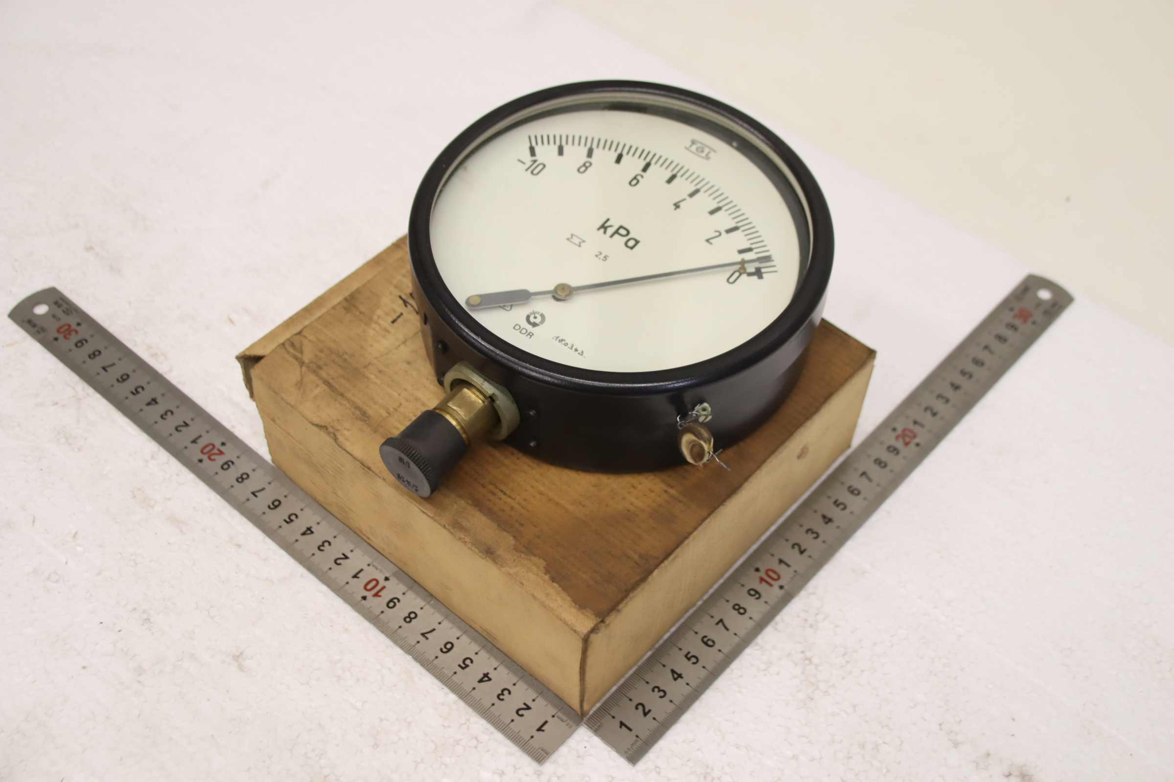 Manometer, test manometer, pressure gauge with Bourdon tube, pressure-temperature measuring technology, Bourdon tube manometer, pressure tester, pressure tester, barometer -Manufacturer: TGL, Manometer 0 - 0.1 bar / 0-10 kPa, unused, original packaging -Type: KM-Weather 160 -Number: 3x pressure gauges available -Price: per piece -Cardboard dimensions: 210/180/H100 mm -Weight: 3 kg/pc.