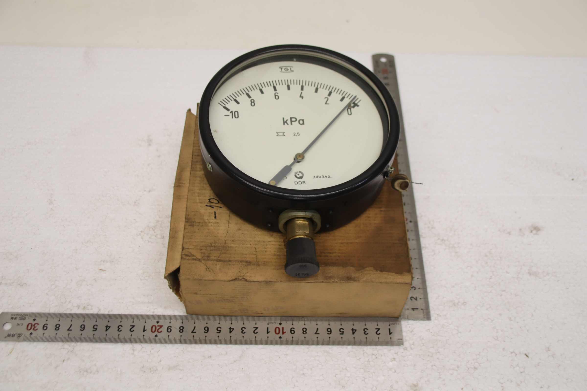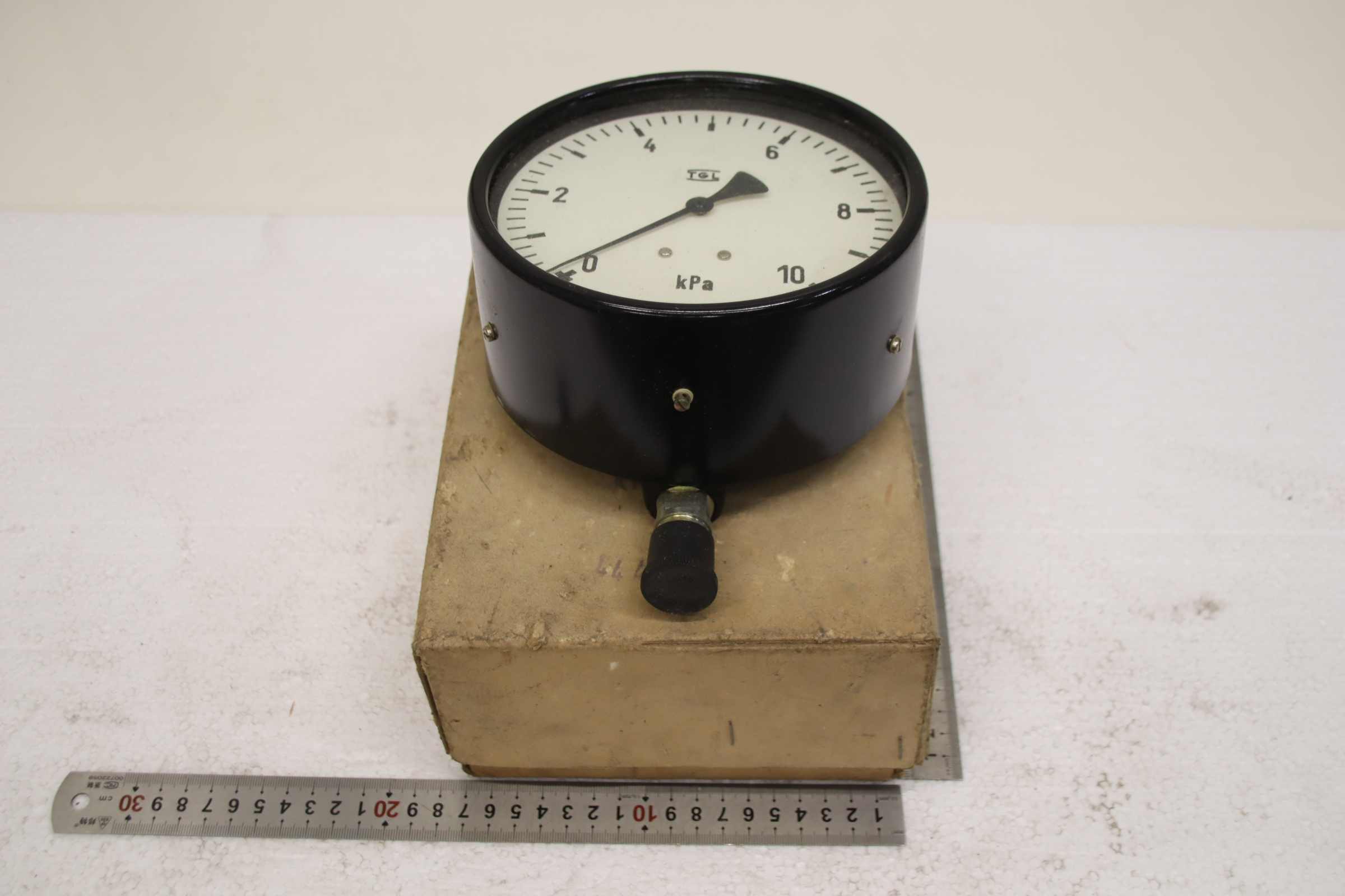 Manometer, test manometer, pressure gauge with Bourdon tube, pressure-temperature measuring technology, Bourdon tube manometer, pressure tester, pressure tester, barometer -Manufacturer: TGL, Manometer -0.06 - 0 bar / -6 - 0 kPa, unused, original packaging -Type: KM 160 -Number: 8x pressure gauges available -Price: per piece -Cardboard dimensions: 190/180/H70 mm -Weight: 0.8 kg/pc.
