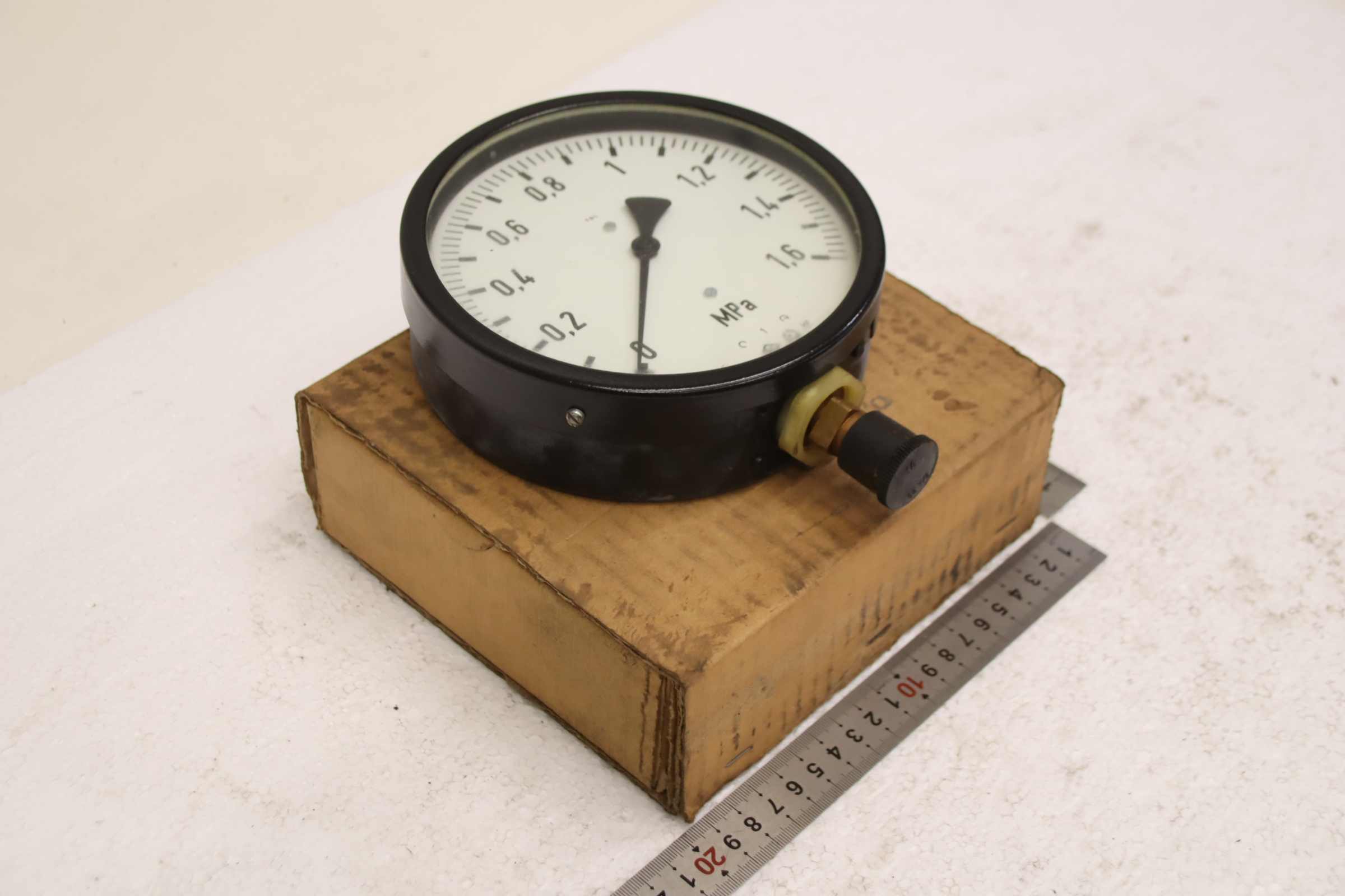 Manometer, test manometer, pressure gauge with Bourdon tube, pressure-temperature measuring technology, Bourdon tube manometer, pressure tester, pressure tester -Manufacturer: TGL, Manometer 0 - 16 bar / 0-1.6 MPa, unused, original packaging -Type: 1/BM 20/2 160Ø 0-1.6 MPa -Number: 18x pressure gauges available -Price: per piece -Cardboard dimensions: 200/180/H70 mm -Weight: 0.9 kg/pc.