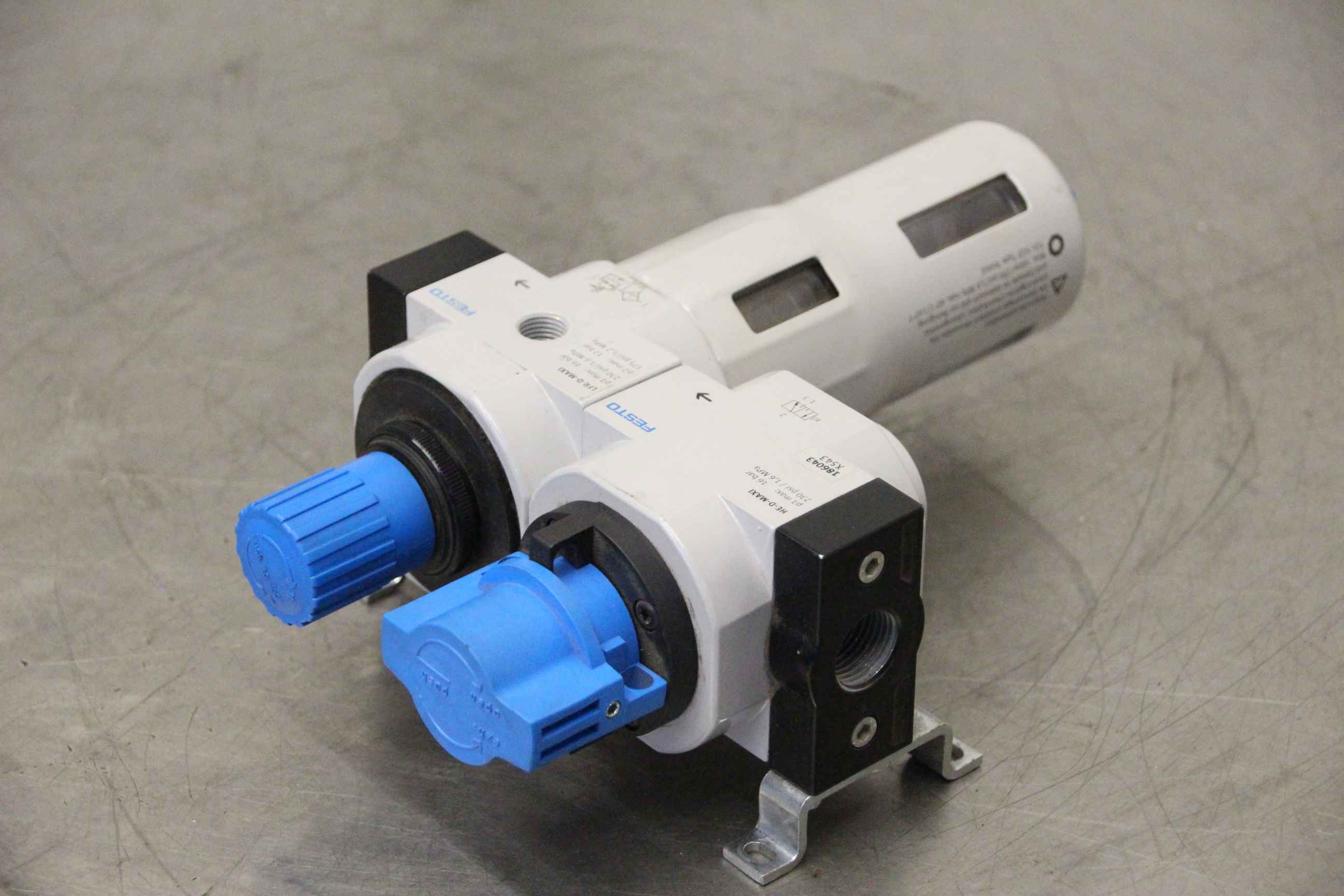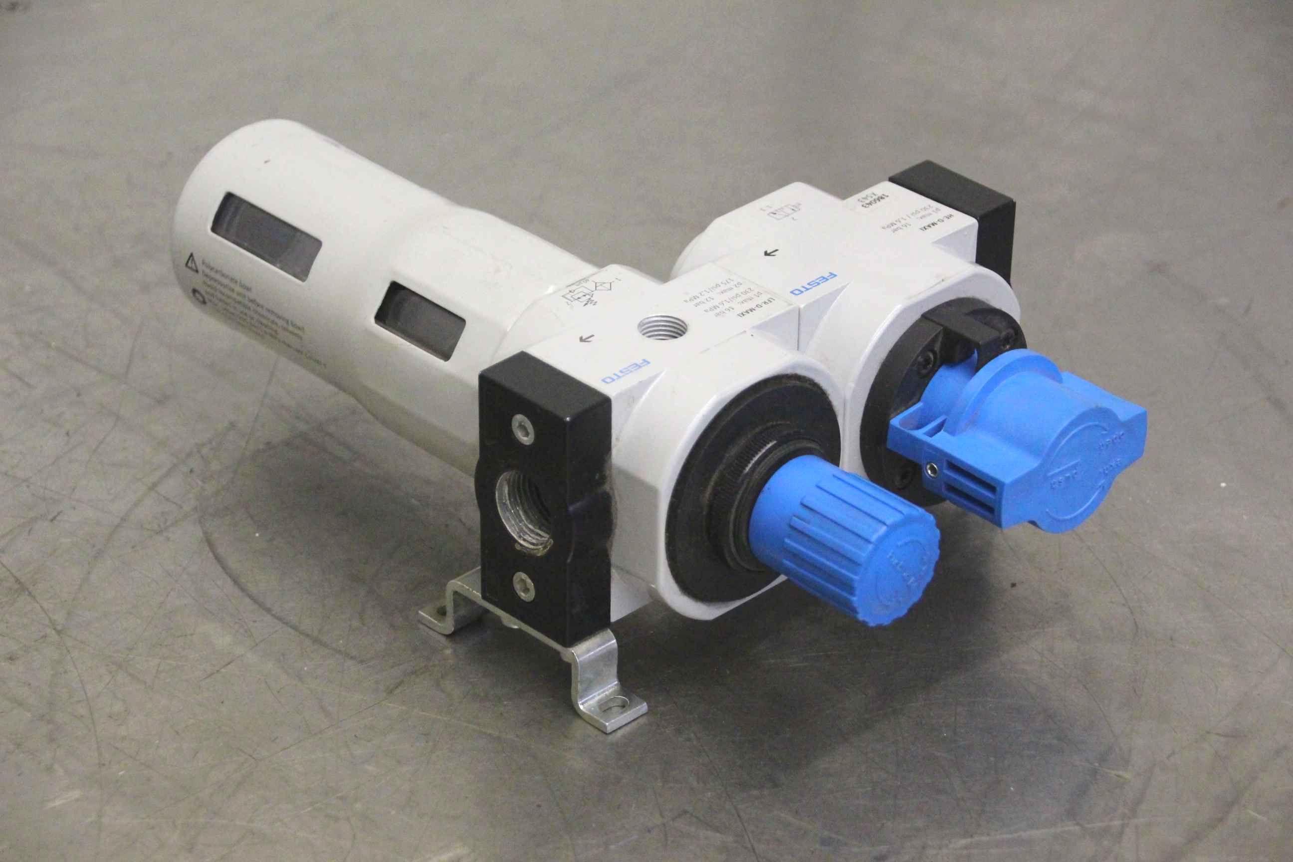 Pressure regulating valve, pressure regulating directional control valves -Manufacturer: Festo, pressure regulating valve -Type:MS4-LR-1/4-D6-AS -Operating pressure: 0-7 bar -Number: 5 valves available -Price: per piece -Dimensions: 100/85/H120 mm -Weight: 0.4 kg/pc.