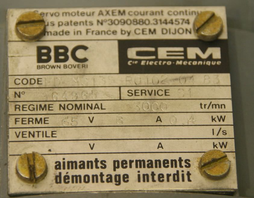 DC motor, servo motor, motor, electric motor -Speed: 3000 rpm -Power: 0.4 kW -Electricity: 65 V -Design: B14 -Shaft diameter: Ø 14 mm -Dimensions: 210/160/H160 mm -Weight: 6 kg