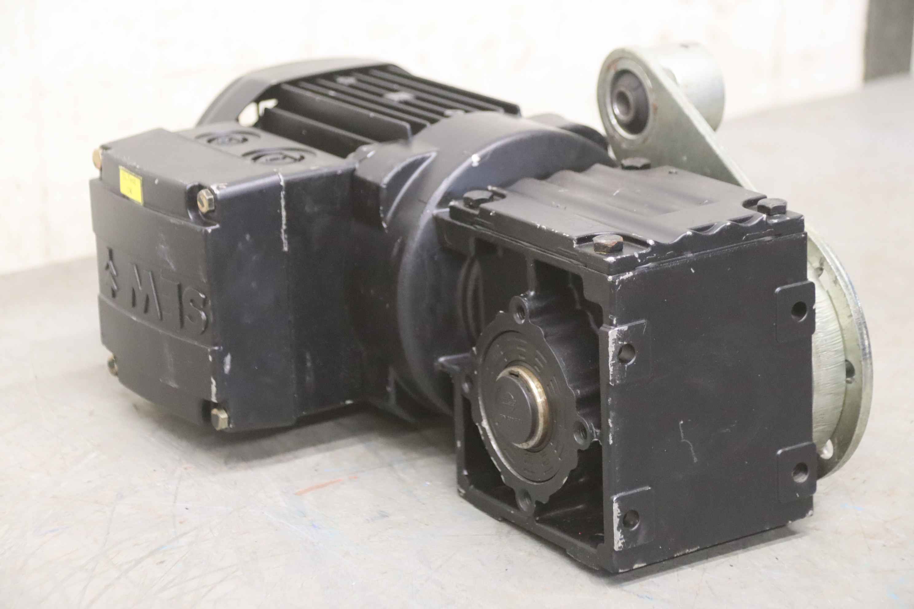 Gear motor, electric motor, electric gear motor, bevel gear motor-Manufacturer: SEW-Eurodrive, geared motor-Type WA20 DR63L4/IS i 39.00-Speed: 33 rpm-Power: 0.25 kW-Hollow shaft: Ø 20 x 90 mm-Protection rating: IP54-Quantity: 1x geared motor available-Dimensions: 300/220/H150 mm-Weight: 9.2 kg