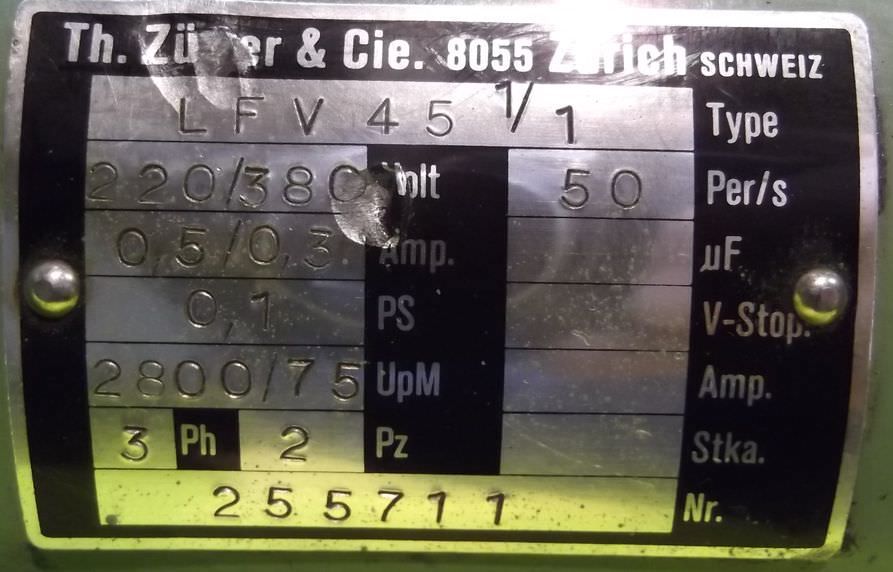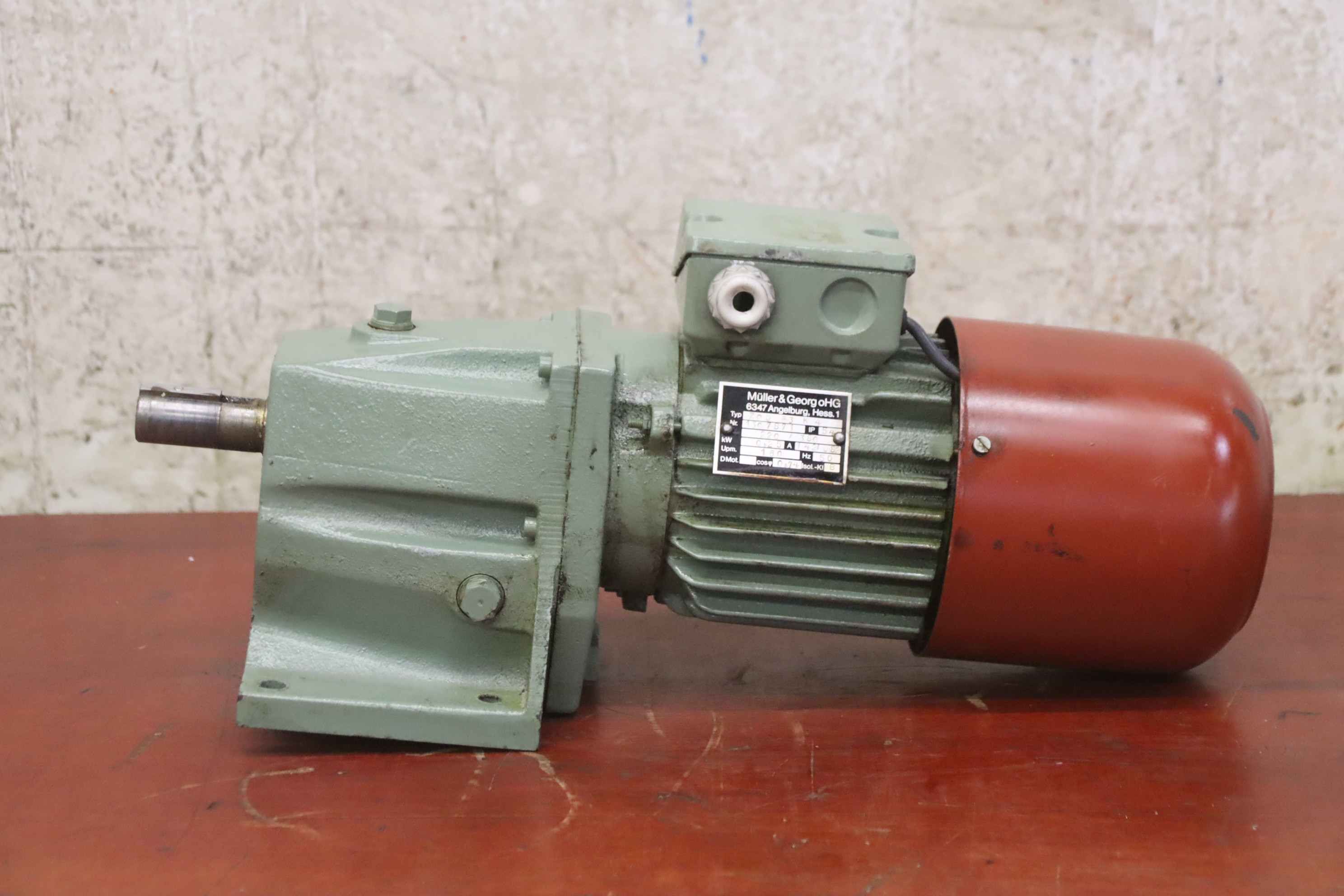 Gear motor, electric motor, electric gear motor-Manufacturer: Müller & Georg, geared motor type ZGO G3 K 4-Speed: 160 rpm-Power: 0.25 kW-Design: B3-Shaft: Ø 22 x 50 mm-Protection rating: IP 54-Dimension: 450/158/H205 mm-Weight: 14.8 kg