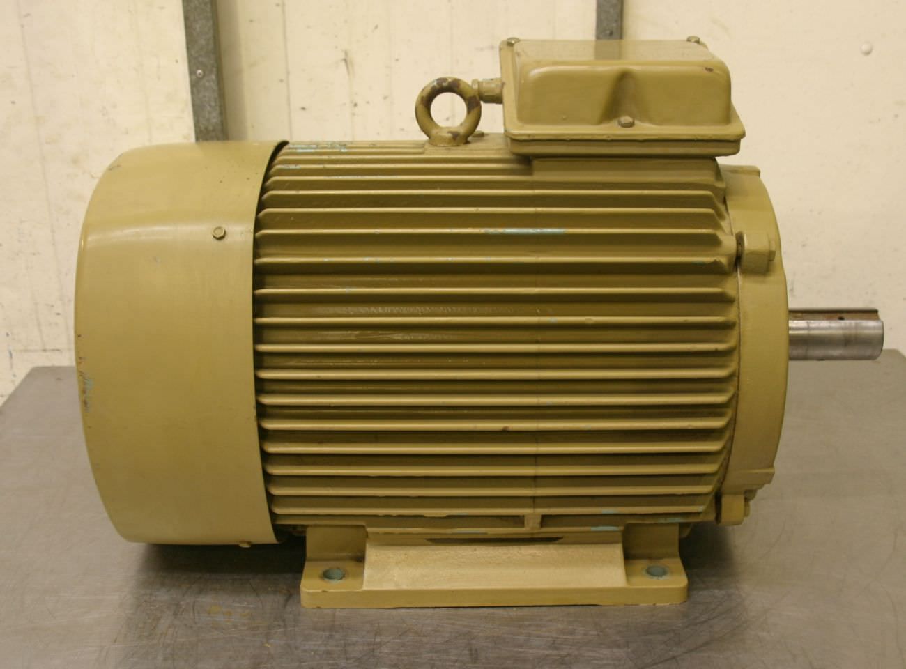 Electric motor, three-phase motor -Manufacturer: Wolf, electric motor type 1LG4186-4AA60-Z 180L -Power: 22 kW -Speed: 1465 rpm -Protection class: IP55 -Shaft: Ø 48 x 110 mm -Design: B3 -Dimensions: 670/340/H440 mm -Weight: 152 kg