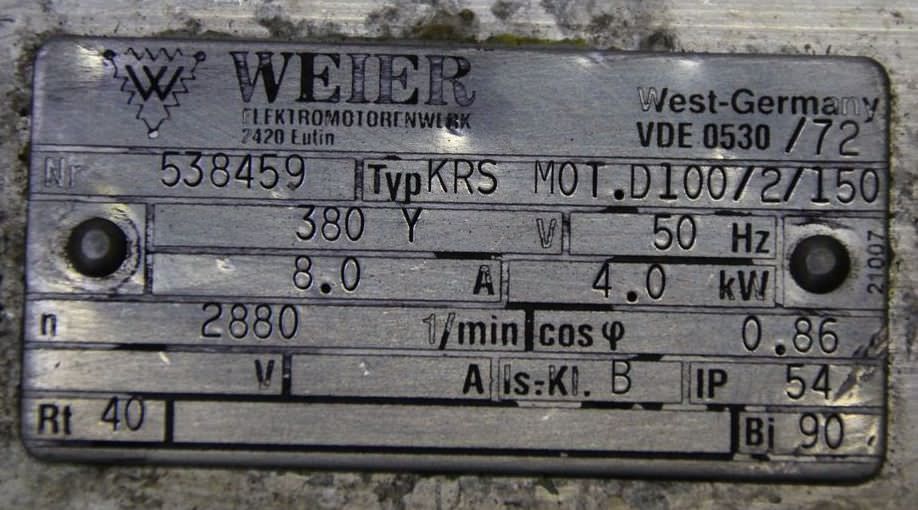 Electric motor, three-phase motor -Power: 5.5kW -Speed: 2920 rpm - Shaft: Ø 38 mm -Type: B5 -Protection class: -Number: 1x available -Dimensions: 445/300/H305 mm -Weight: 41kg