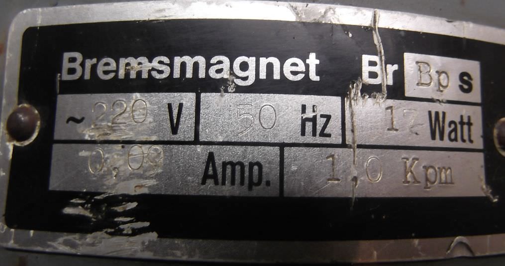 three-phase motor, electric motor -Power: 2.2 kW -Speed: 930 rpm -Shaft: Ø 28 mm -Design: B3 -Protection class: IP 44 -Brake: 220 Volt -Quantity: 1 piece available -Dimensions: 470/270/H205 mm -Weight: 39 kg