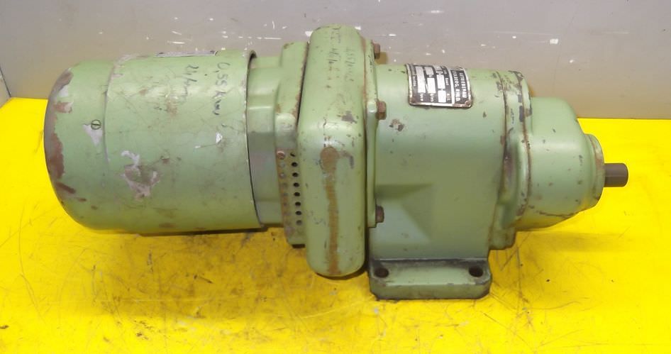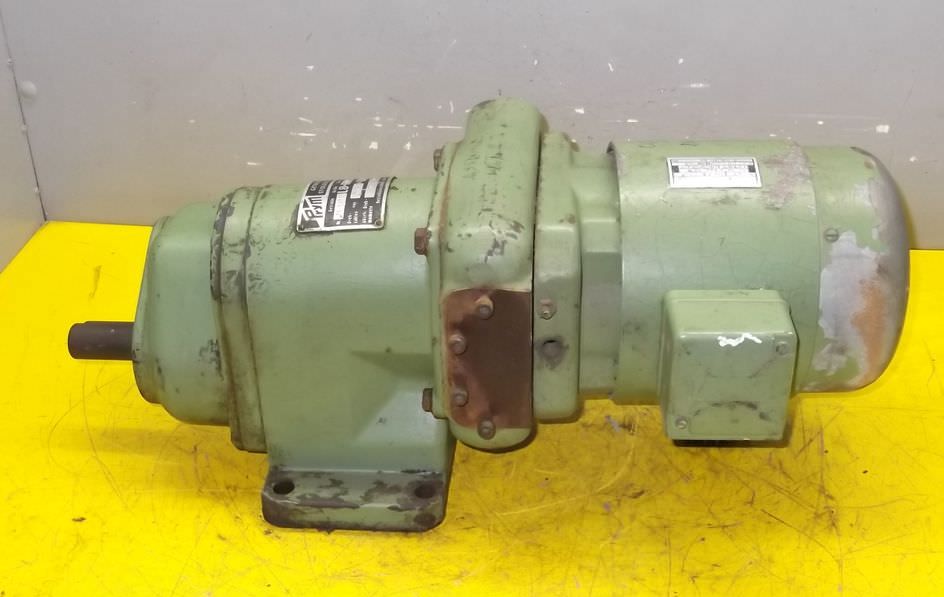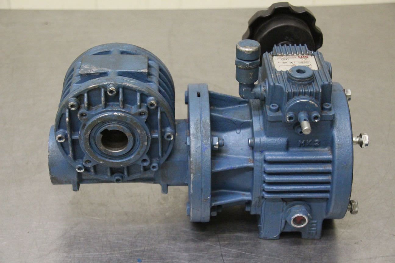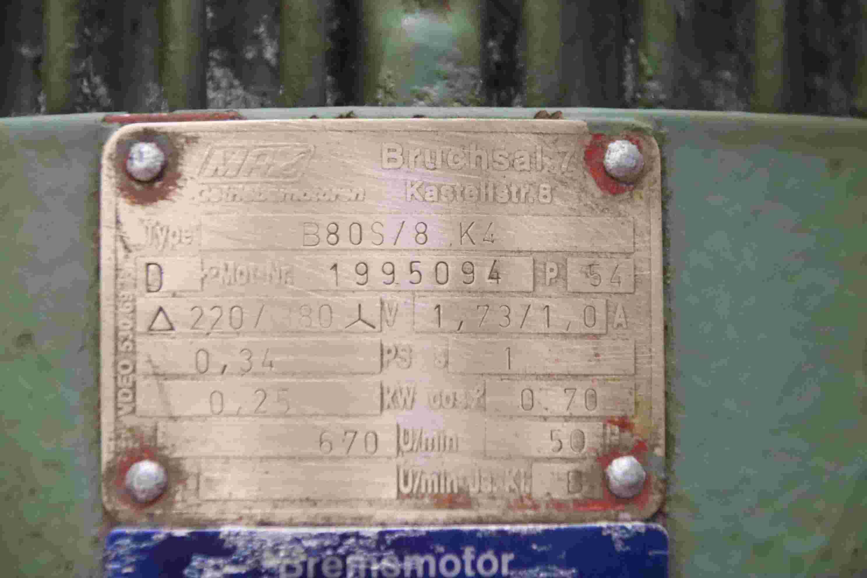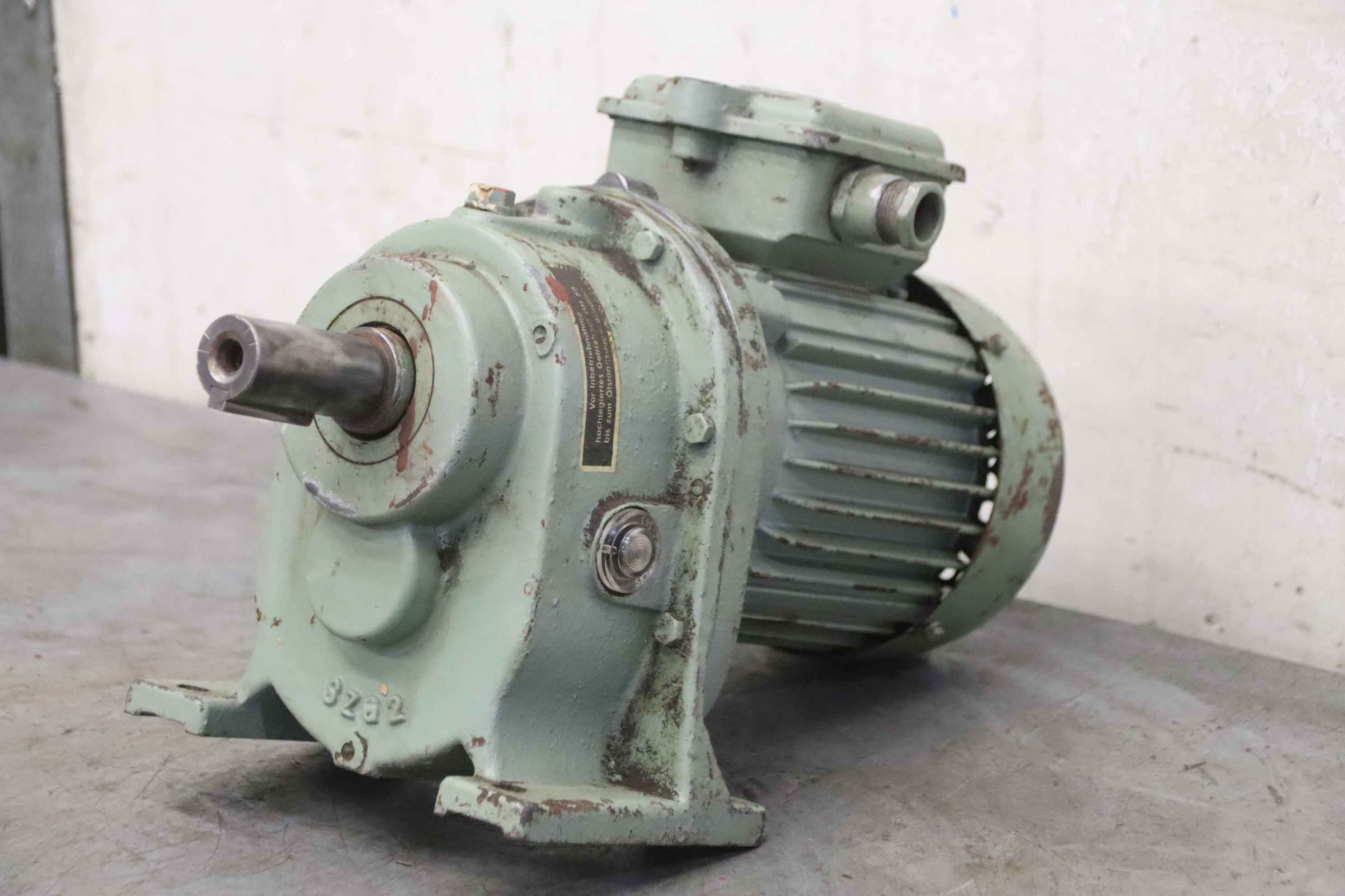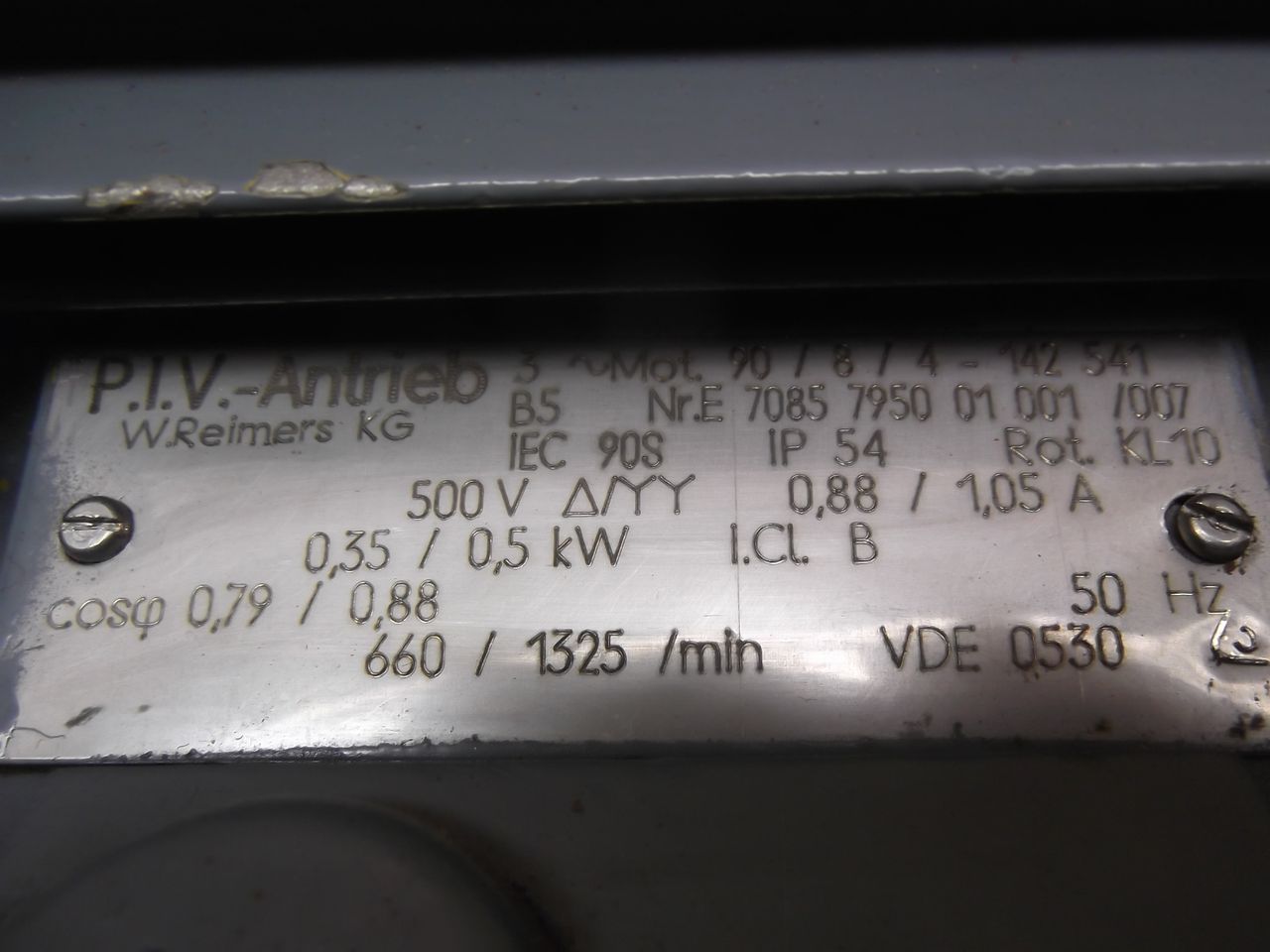 adjustable gear motor, variable speed gear motor, electric motor-Handover in the current condition, as inspected-Receptacle and handwheel for adjustment are missing-Manufacturer engine Prym type: AD80KZ4-Manufacturer gearbox Prym type: L8-U16-Motor power: 0.55 kW-Speed range: 24-120 rpm-Motor: adjustable-Construction: B3-Drive shaft: Ø 24 mm-Dimensions: 535/230/H220 mm-Weight: 28 kg