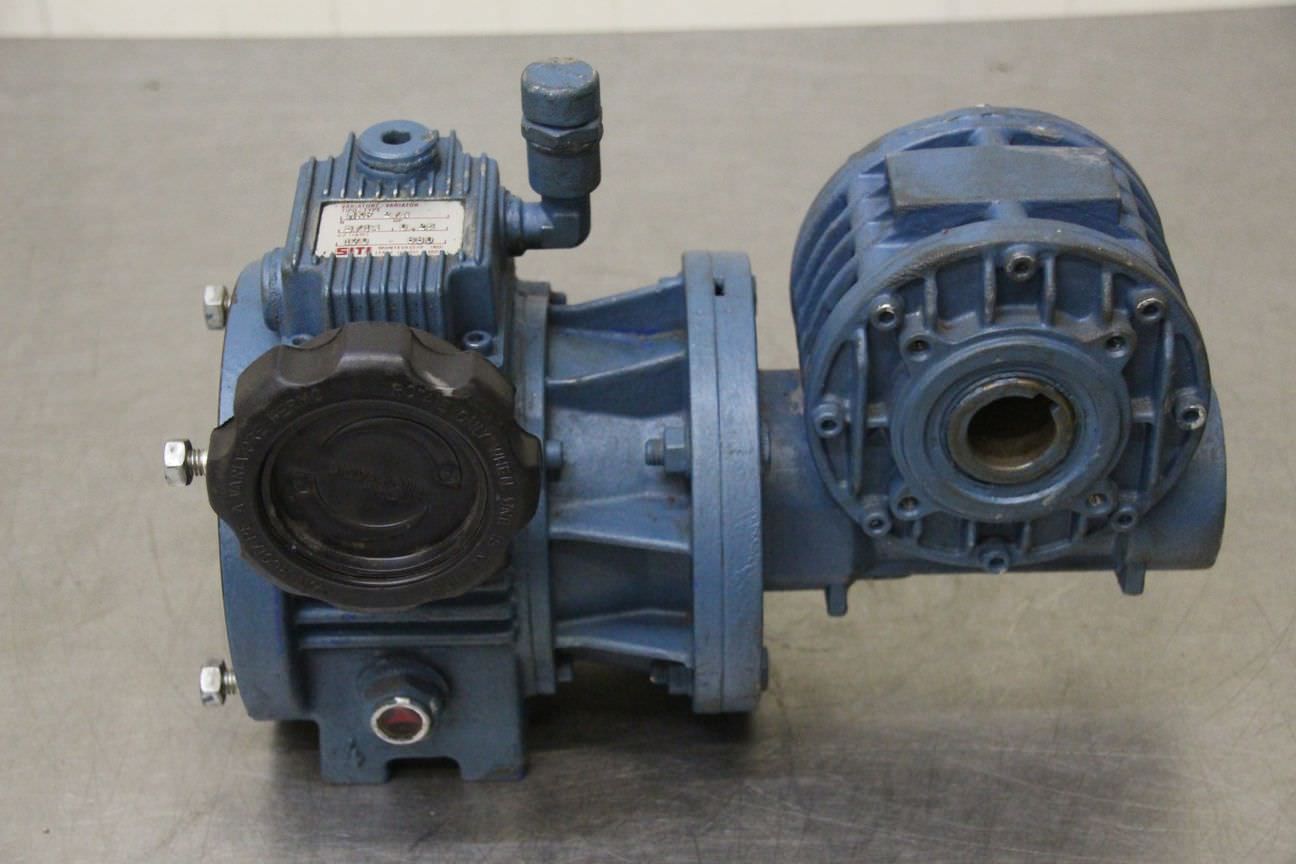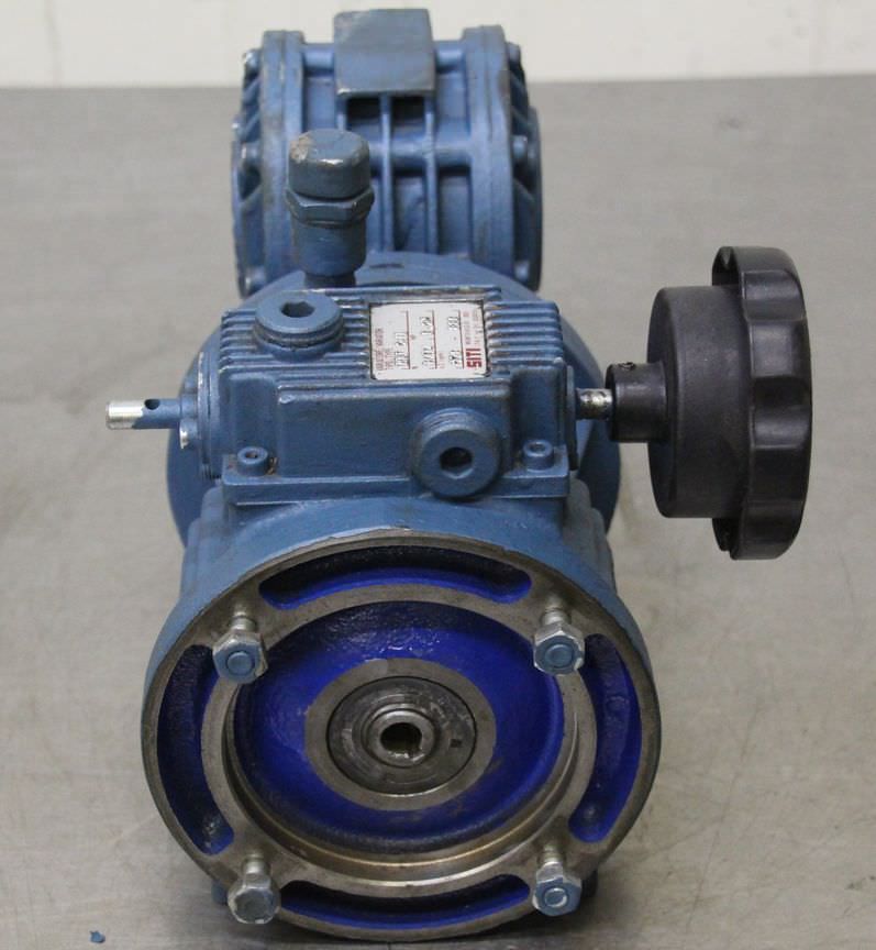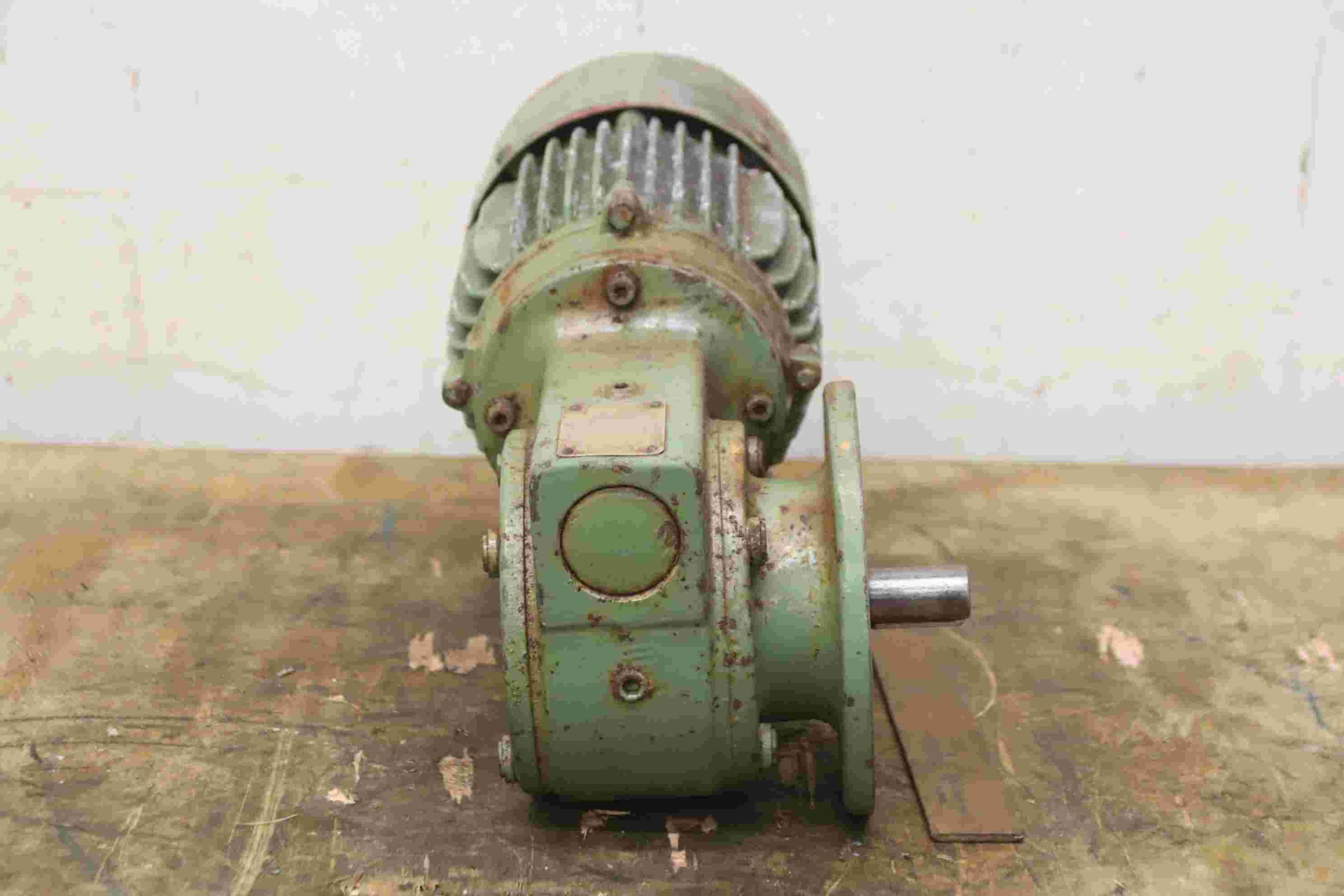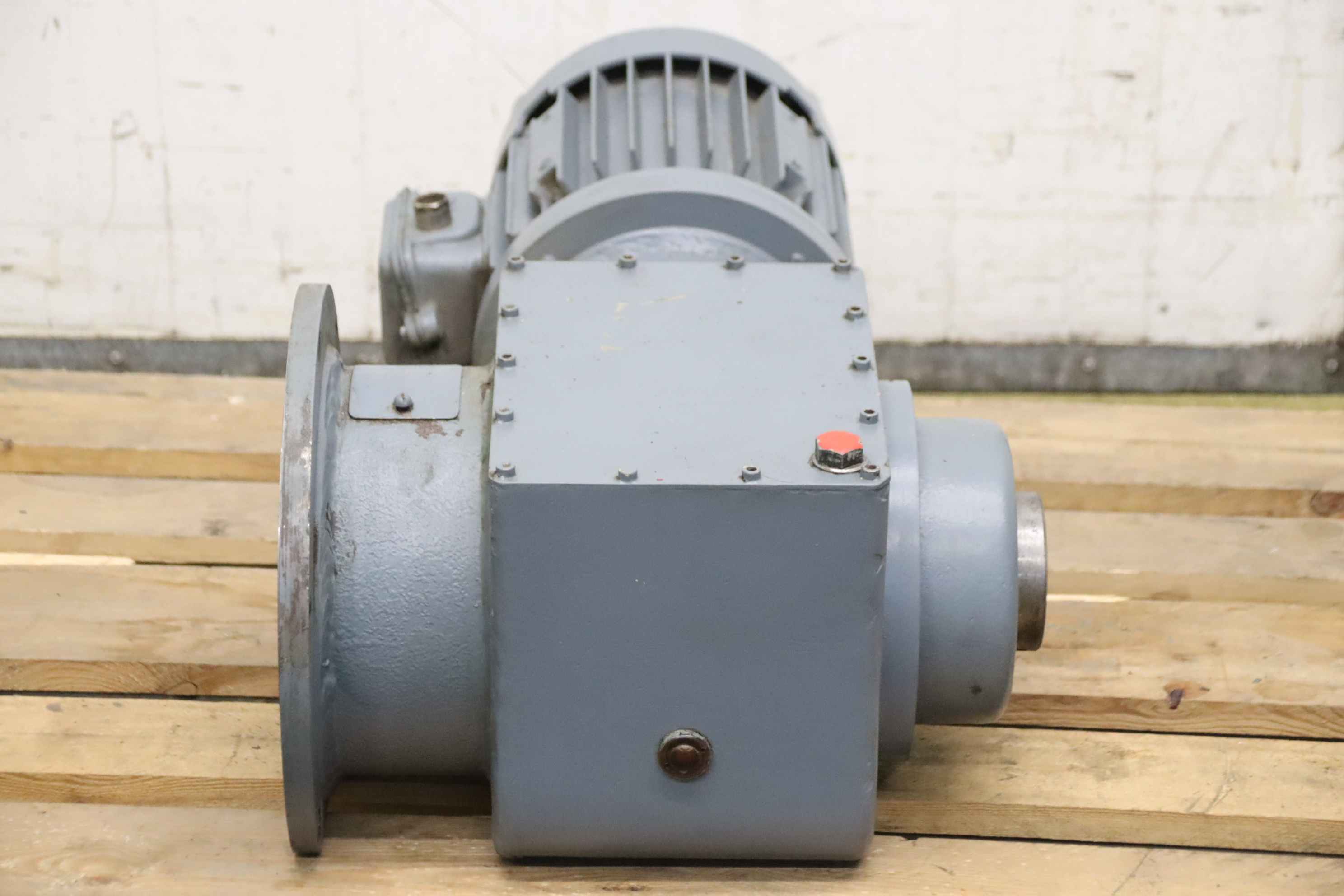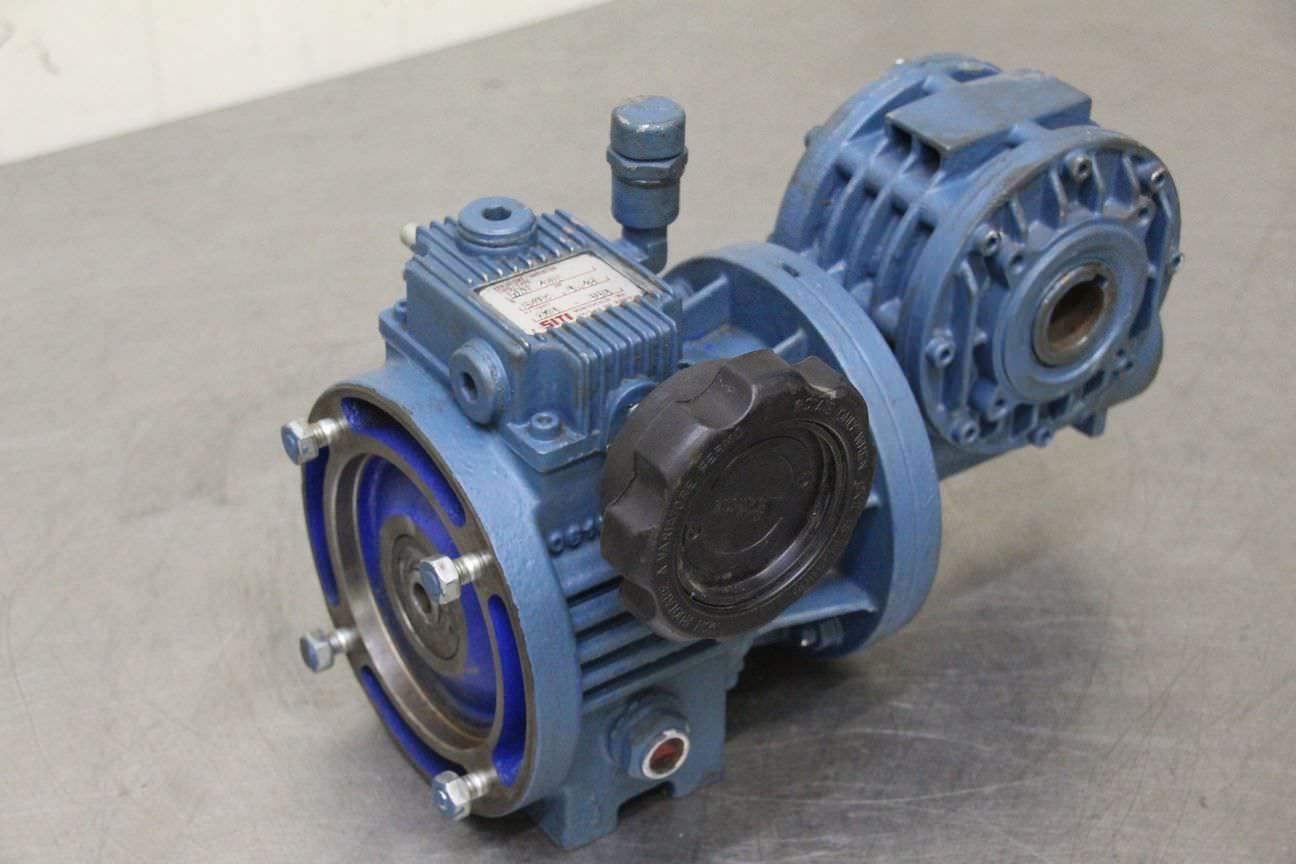 adjustable gear motor, variable speed gear motor, electric motor-Handover in the current condition, as inspected-Receptacle and handwheel for adjustment are missing-Manufacturer engine Prym type: AD80KZ4-Manufacturer gearbox Prym type: L8-U16-Motor power: 0.55 kW-Speed range: 24-120 rpm-Motor: adjustable-Construction: B3-Drive shaft: Ø 24 mm-Dimensions: 535/230/H220 mm-Weight: 28 kg