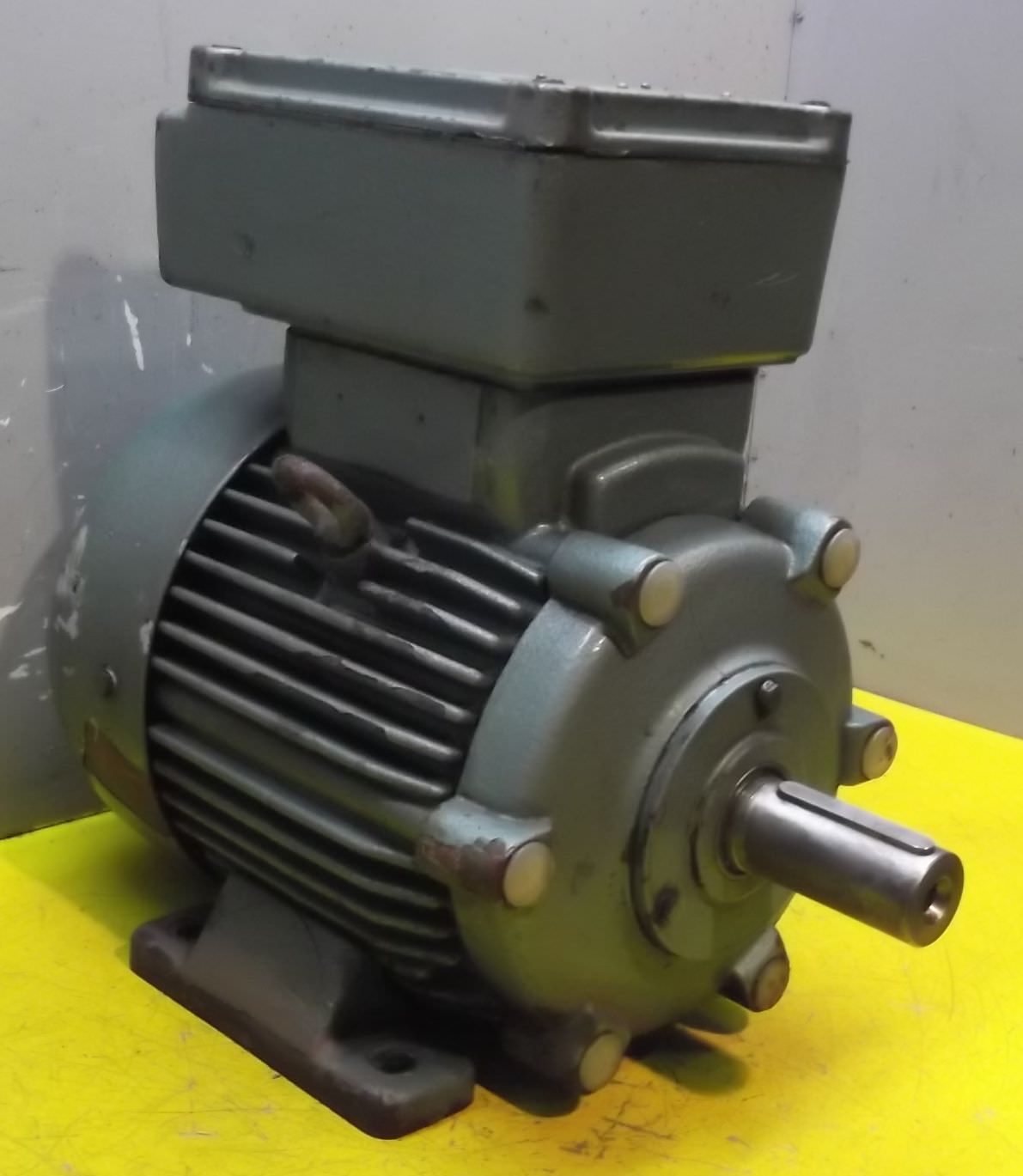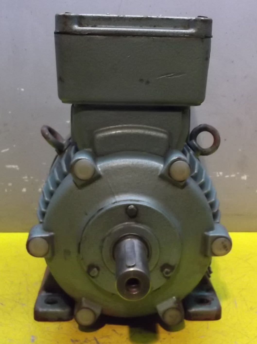 Three-phase motor, electric motor-Manufacturer: AEG, electric motor type AD80K6R3-Power: 0.33 kw-Speed: 850 rpm-Shaft: Ø 19 x 40 mm-Construction: B3-Protection class: IP 44-Dimensions: 250/200/H165 mm-Weight: 10.2 kg