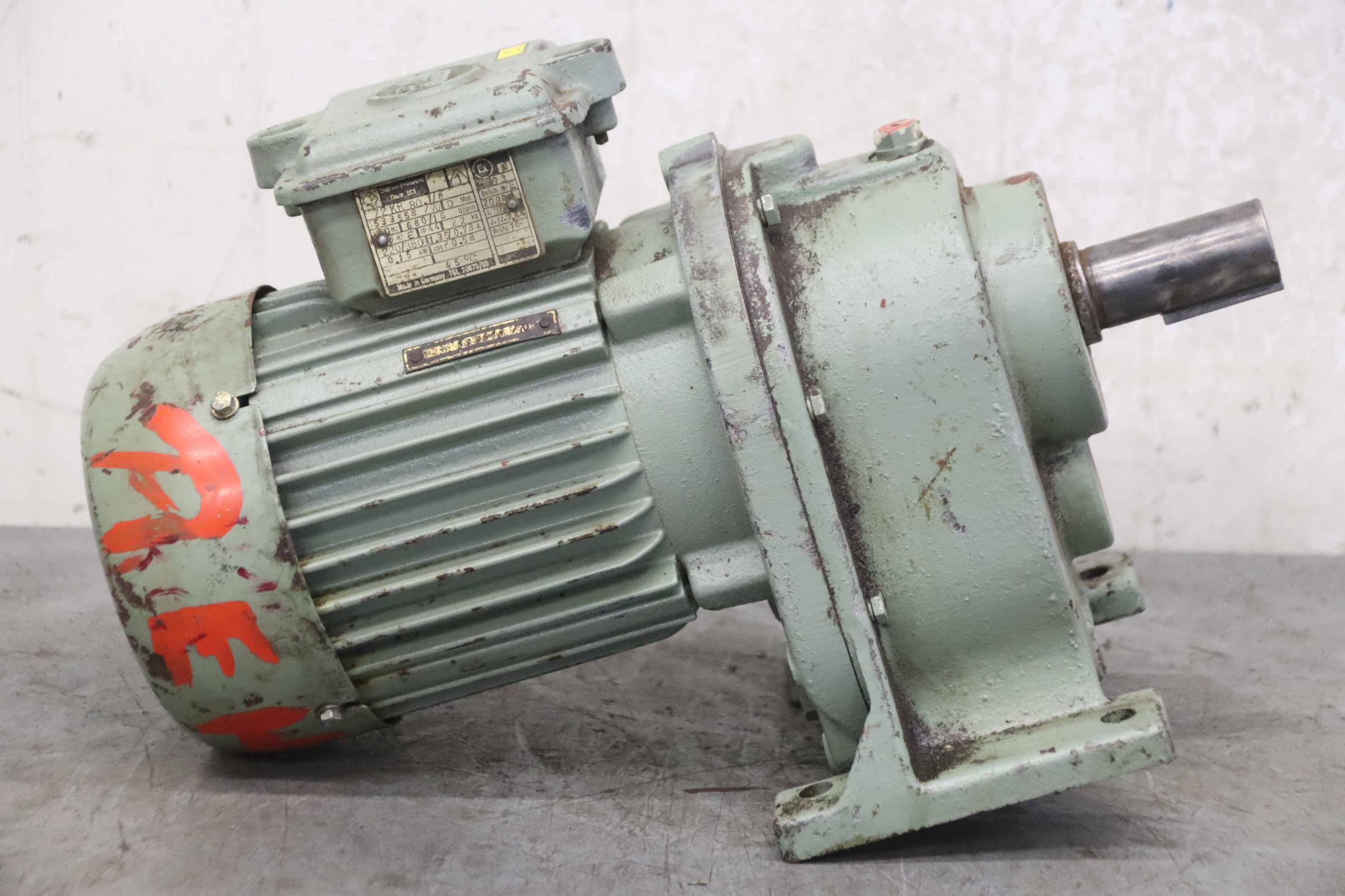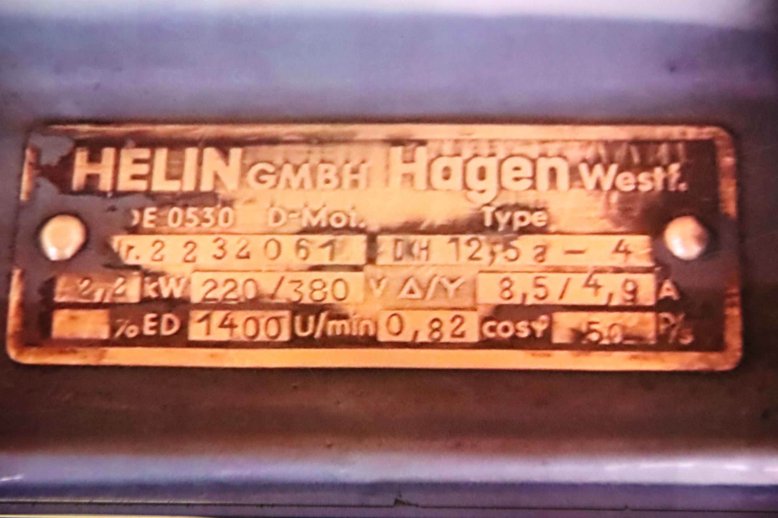 Geared motor, electric motor, electric geared motor, crane motor, crane drive -Manufacturer: HELIN, geared motor from Lotze HDZK swivel bending machine -Type: DKH 12.5a-4 -Speed: approx. 340 rpm -Motor: 2.2 kW / 1400 rpm -Voltage: 220/380 V -Shaft: Ø 33 x 40 mm -Dimensions: 750/410/H295 mm -Weight: 135 kg