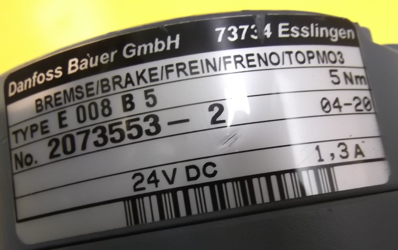 Gear motor, electric motor, three-phase motor, electric gear motor -Manufacturer: Bauer, gear motor type BG20-37/DV08MA4-TOF/MG -Speed: 34 rpm -Power: 0.37kw -Type: B5 -Shaft: Ø 25 x 50 mm -Recess: 110 mm -Lock circle: Ø 130 mm -Protection class: IP 65 -Dimensions: 485/160/H215 mm -Weight: 24kg
