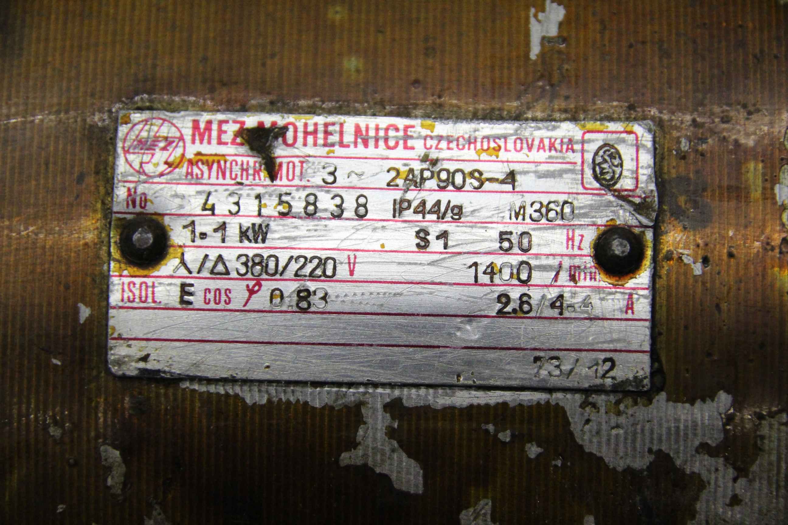 Electric motor, three-phase motor-Manufacturer: MEZ, electric motor type 2AP90S-4-Power: 1.1 kW-Speed: 1400 rpm-Shaft: Ø 24 x 50 mm-Construction: B14-Protection class: IP 44-Dimensions: 300/220/H173 mm-Weight: 13.7 kg
