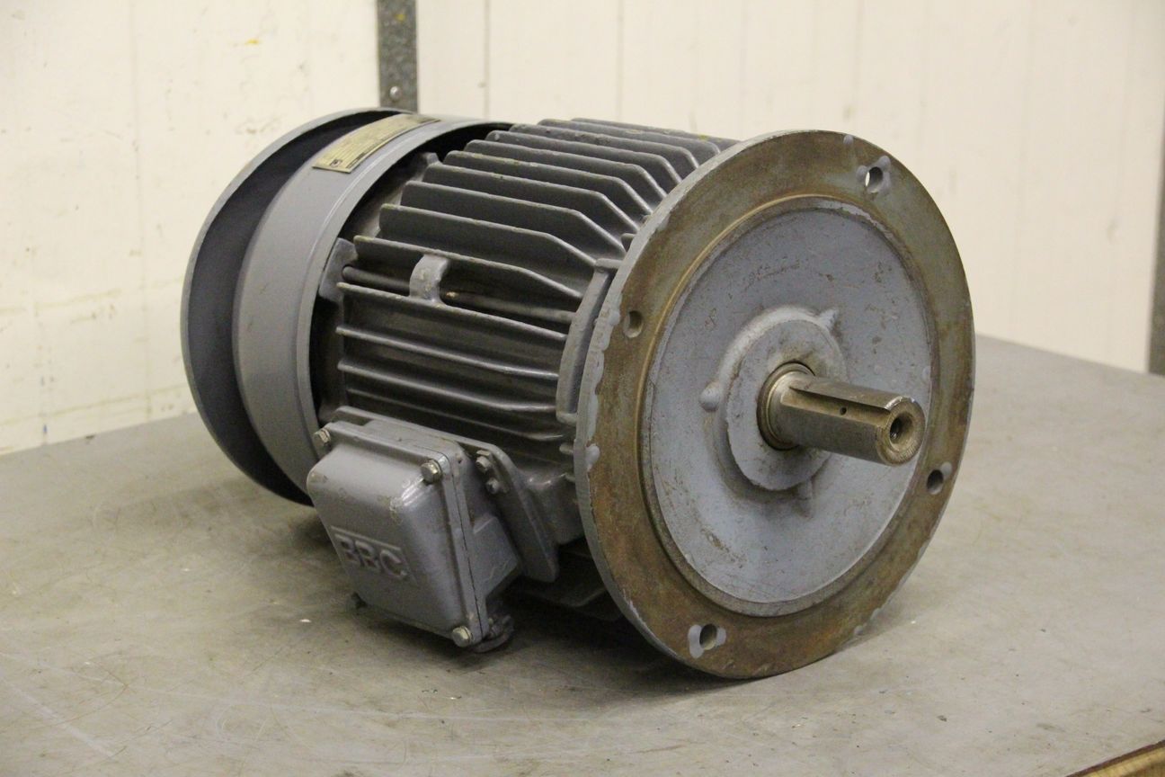 Electric motor, three-phase motor-Manufacturer: AEG, electric motor type AM160 MV4 Ex-Power: 10 kW-Speed: 1465 rpm-Shaft: Ø 42 x 110 mm-Design: B3-Dimensions: 590/420/H335mm-Weight: 120 kg