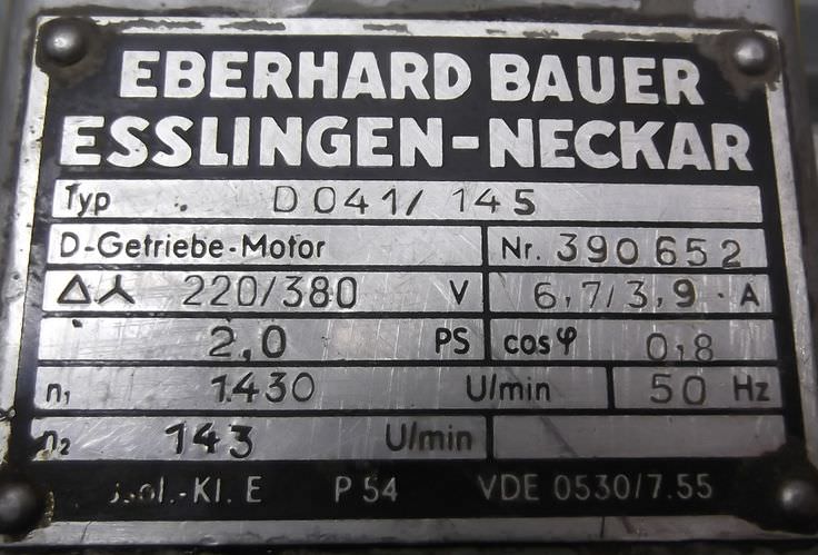 geared motor, electric motor -Speed: 120 rpm -Power: 3.0 kW -Design: B3 angle -Shaft diameter: Ø 35 mm -Protection class: IP 54 -Quantity: 1 piece available -Dimensions: 730/260/H240 mm -Weight: 63 kg