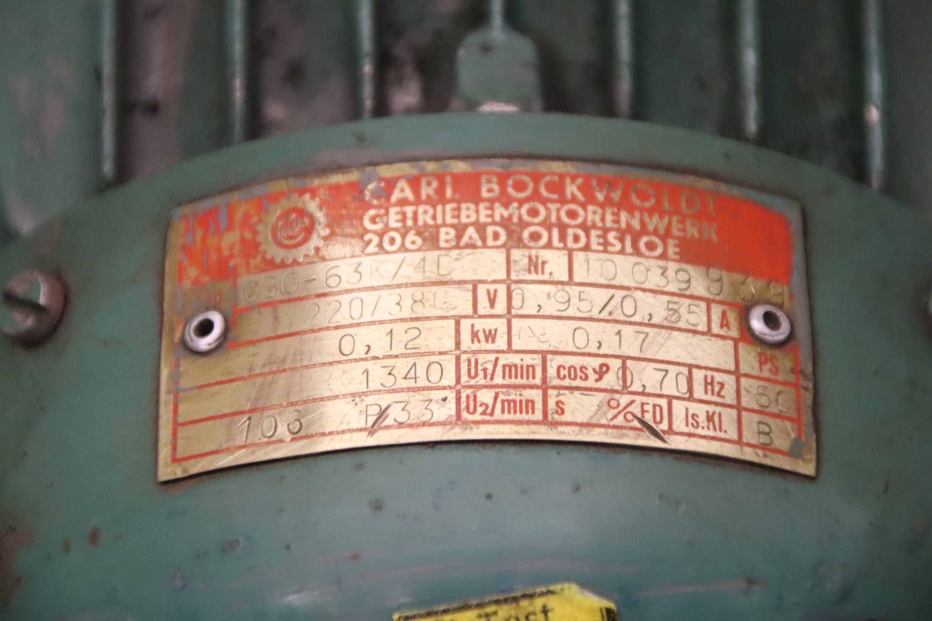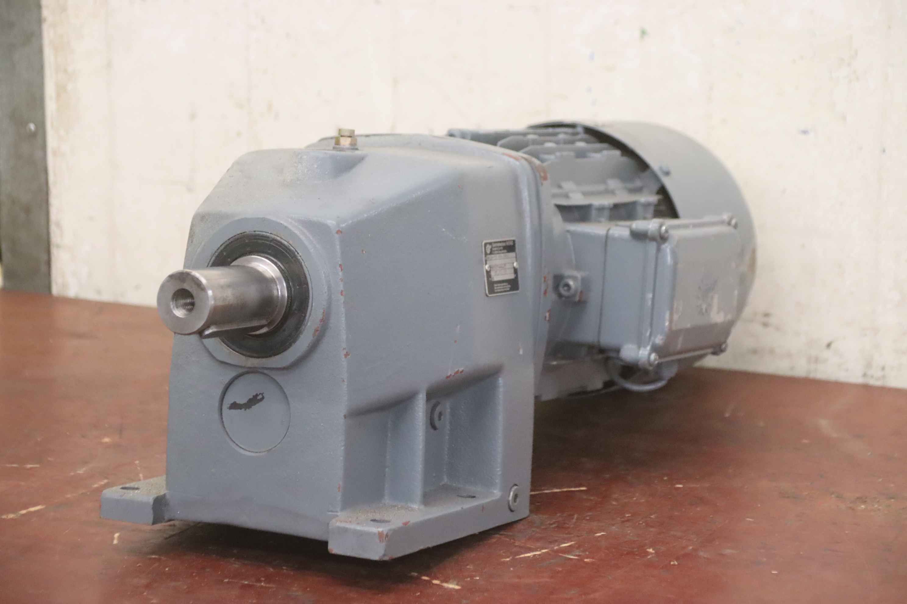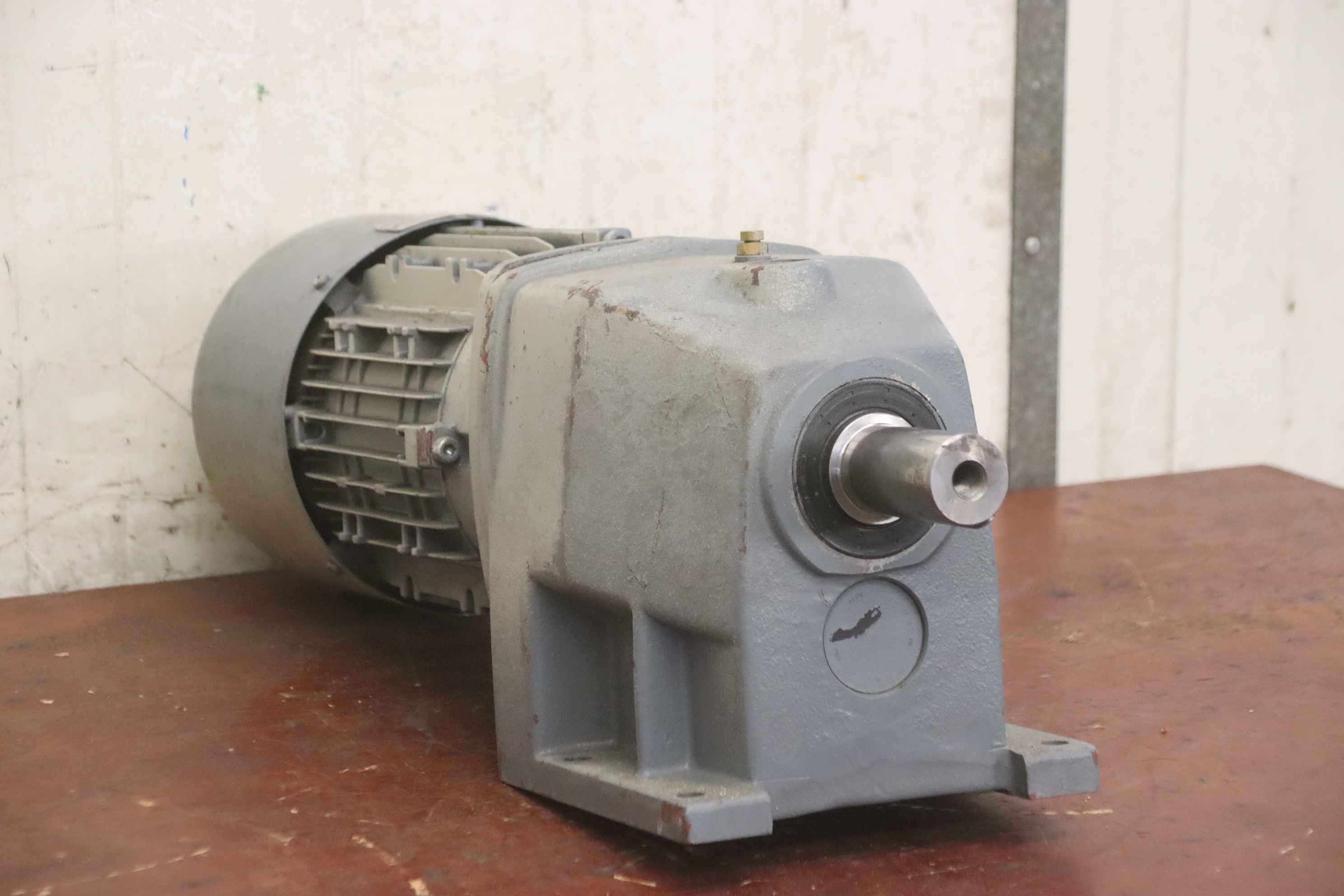 Gear motor, electric motor, electric gear motor-Manufacturer: Cebeha, gear motor type C30-63K/4DC-Speed: 106 rpm-Motor: 0.12 kW / 1340 rpm-Shaft: Ø 20 x 40 mm-Protection class: P33-Total dimensions: 335/170/H170 mm-Weight: 11 kg