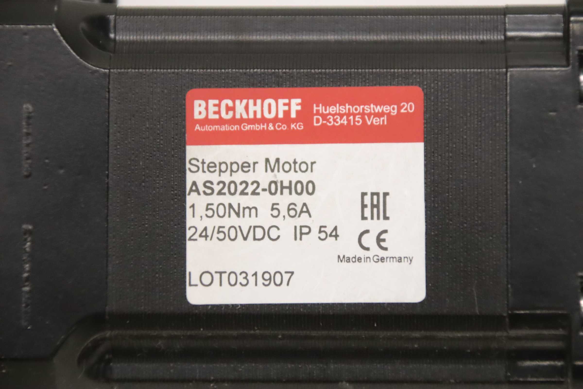 Servo motor, electric motor, DC motor, stepper motor, stepper motor -Manufacturer: Beckhoff, Stepper Motor Type AS2022-0H00 -Speed: rpm -Voltage: 24/50 V -Shaft: Ø 6 x 20 mm -Protection class: IP54 -Quantity: 2 servo motors available -Price: per piece -Dimensions: 124/56/H77 mm -Weight: 1.1 kg/pc.