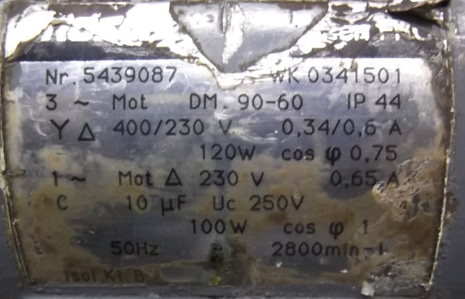 Electric motor, three-phase motor-Power: 0.12 kW-Speed: 870 rpm-Shaft diameter: 11 mm-Construction: B3-Protection class: IP 54-Number: 3x available-Price: per piece-Dimensions: 180/134/H160 mm-Weight: 6 kg