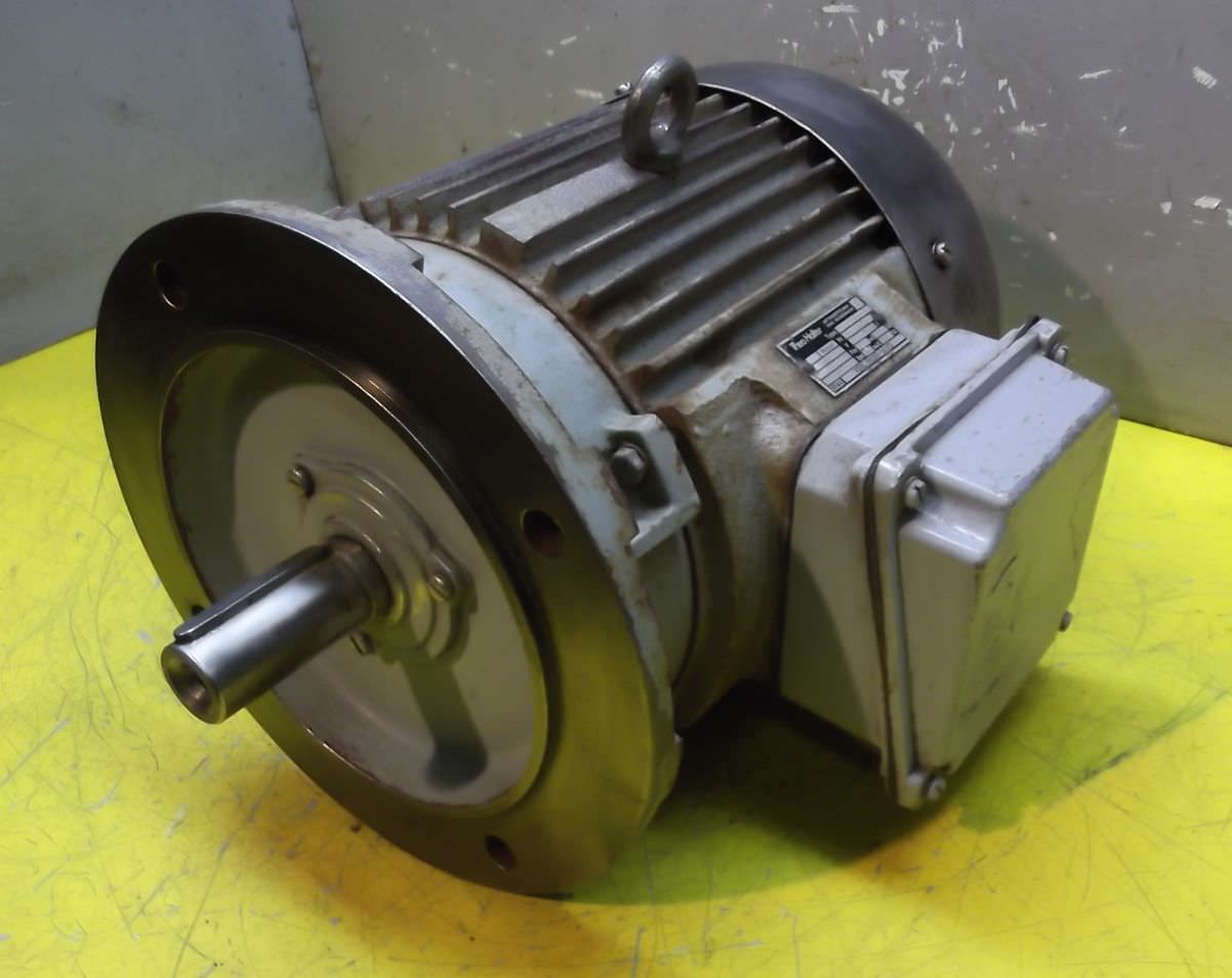 Three-phase motor, electric motor-Power: 7.5 kW-Speed: 2860 rpm-Shaft: Ø 32 mm-Construction: 1x B5 6x B3-Protection class: IP 44-Price: per piece-Number: 2x available-Dimensions: 450/250/H310 mm-Weight: 57 kg