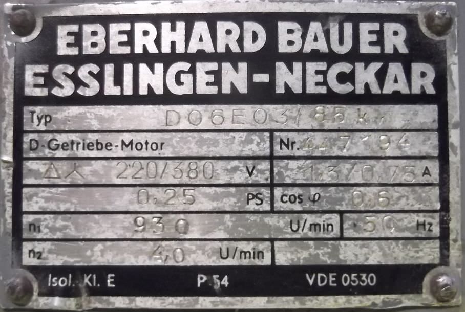 Gear motor, electric motor, three-phase motor-Speed: 31.5/63 rpm-Power: 0.25/0.37 kW-Construction: B3-Diameter shaft: Ø 25 mm-Protection class: IP 44/55-Price: per piece-Number: 2x available-Dimensions: 405/190/H160 mm-Weight: 17 kg
