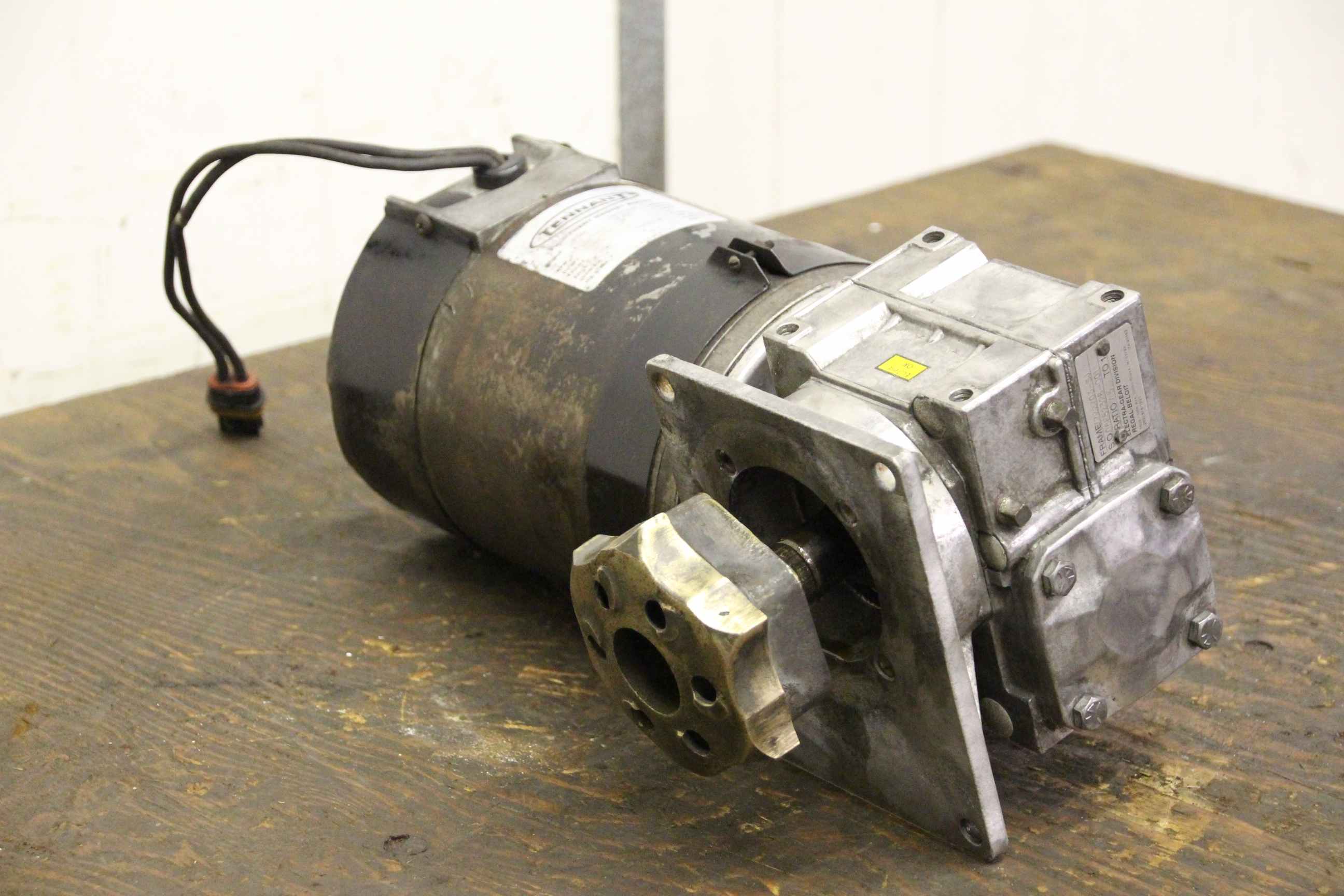 Permanent Magnet Motor, Permanent Magnet Motor, Electric Motor, Perm.Magn-Mot, Perm Magnet Motors, Servo Motor -Manufacturer: Tennant, Permanent Magnet Motor Type 377425 -Power: 0.74 kW -Speed: 2200 rpm -Voltage: 36 V -Gearbox: Regal-Beloit 7722703-SJ -Translation: 7.5 : 1 -Shaft: Ø 19 x 35 mm -Dimensions: 395/210/H195 mm -Weight: 21 kg