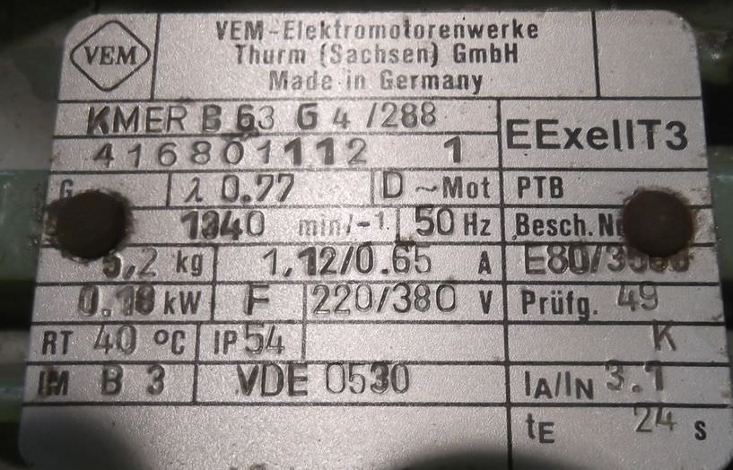 Gear motor, electric motor-Speed: 63 rpm-Power: 0.37 kW-Construction: B5-Diameter shaft: Ø 22 mm-Protection class: IP 44-Price: per piece-Number: 4x available-Dimensions: 370/140/H195 mm-Weight: 12.8 kg