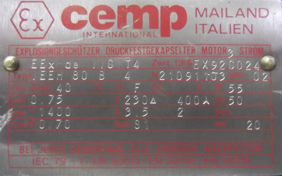 Gear motor, electric motor -Speed: 50 rpm -Power: 0.55 kW -Design: B3 -Shaft diameter: Ø 30 mm -Protection class: IP 44 -Quantity: 1 piece available -Weight: 26 kg