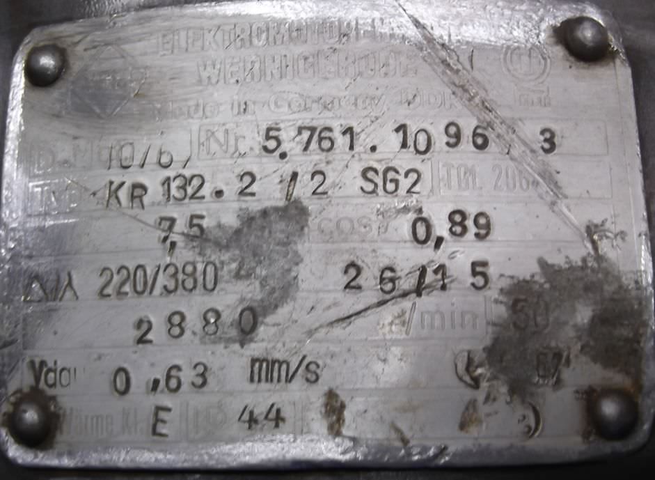Three-phase motor with 2 speeds, electric motor-Motor: is unused-Power: 12.5/18.5 kW-Speed: 970/1460 rpm-Shaft: Ø 55 mm-Construction: B3-Protection class: IP 55-pole changing-Dimensions: 740/390/H450 mm-Weight: 148 kg