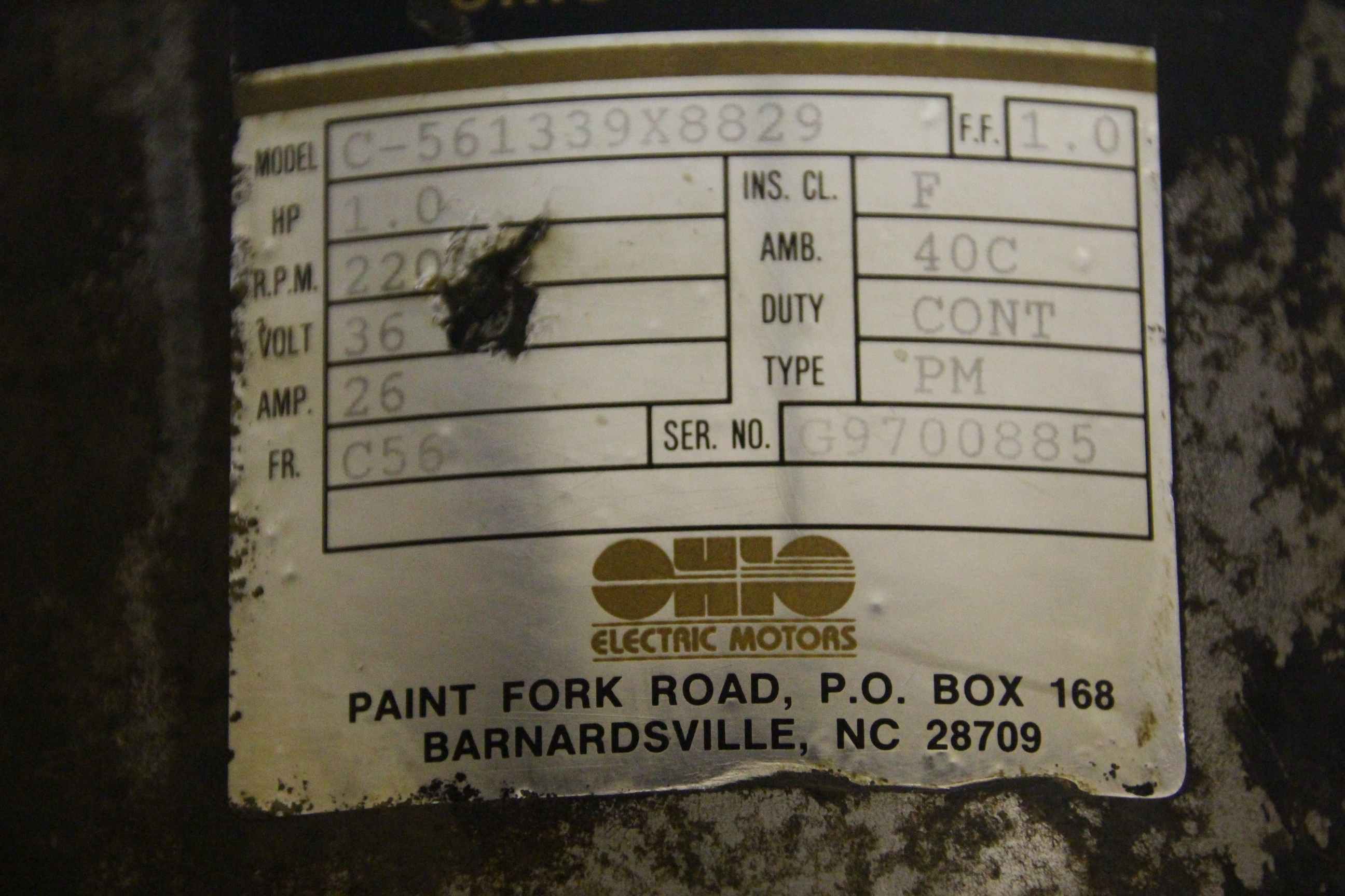 Permanent Magnet Motor, Permanent Magnet Motor, Electric Motor, Perm.Magn-Mot, Perm Magnet Motors, Servo Motor -Handover: in its current condition as inspected -Housing: Damage/corrosion, see pictures -Manufacturer: Ohio Electric Motors, Permanent Magnet Motor -Type: C-561339X8829 -Power: 0.74 kW -Speed: 2200 rpm -Voltage: 36 V -Transmission: Browning Part No. 20QC56L -Translation: 7.5 :1 -Shaft: Ø 19 x 35 mm/Ø 25 x 30 mm -Dimensions: 395/210/H195 mm -Weight: 21 kg