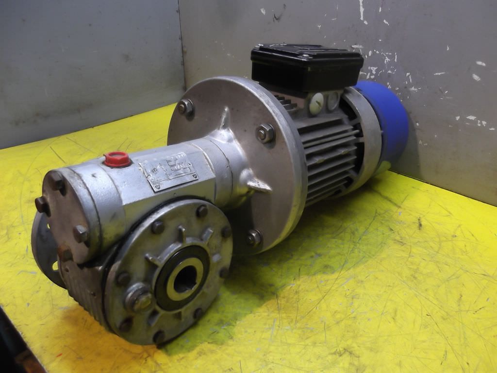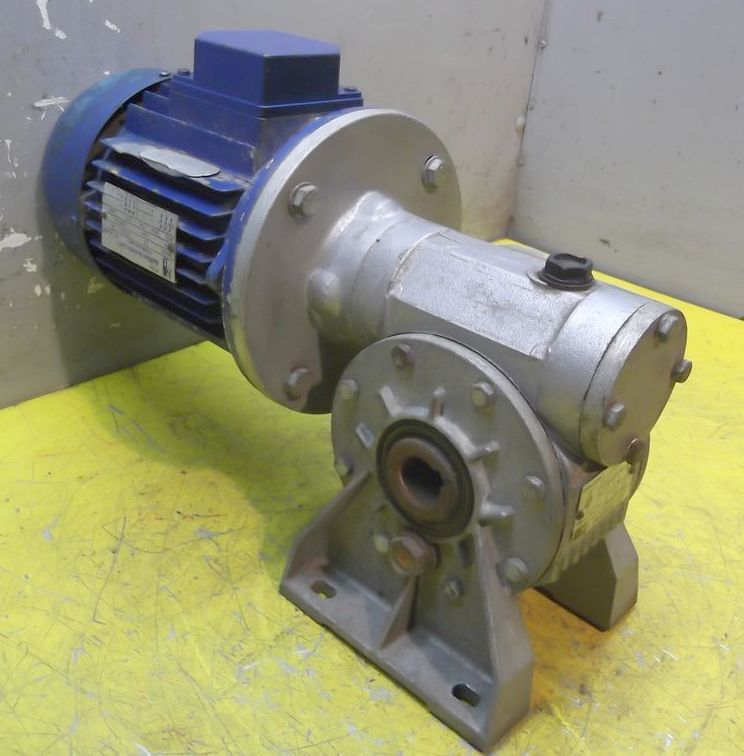 adjustable gear motor, variable speed gear motor, electric motor-Gearbox manufacturer: MOTOVARIO TKF/5-Engine manufacturer:-Motor power: 0.37 kW-Speed range without angular gear: 190-1000 rpm-Speed range with angular gear: 19-100 rpm-Motor: adjustable-Diameter hollow shaft: Ø 24 mm-Construction: B14 angle-Number: 1 piece of motors available-Price: per piece-Dimensions: 570/220/H210 mm-Weight: 28 kg