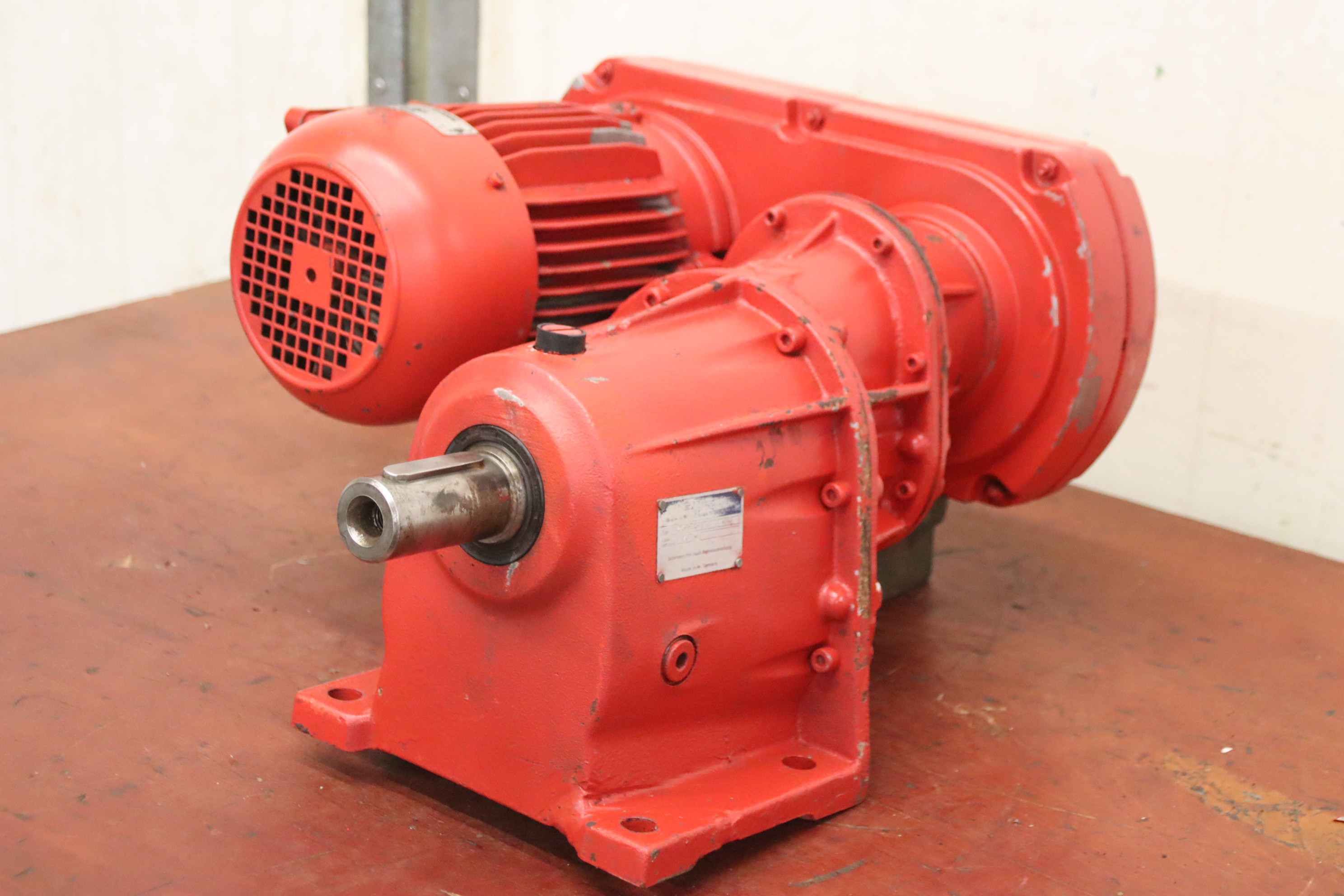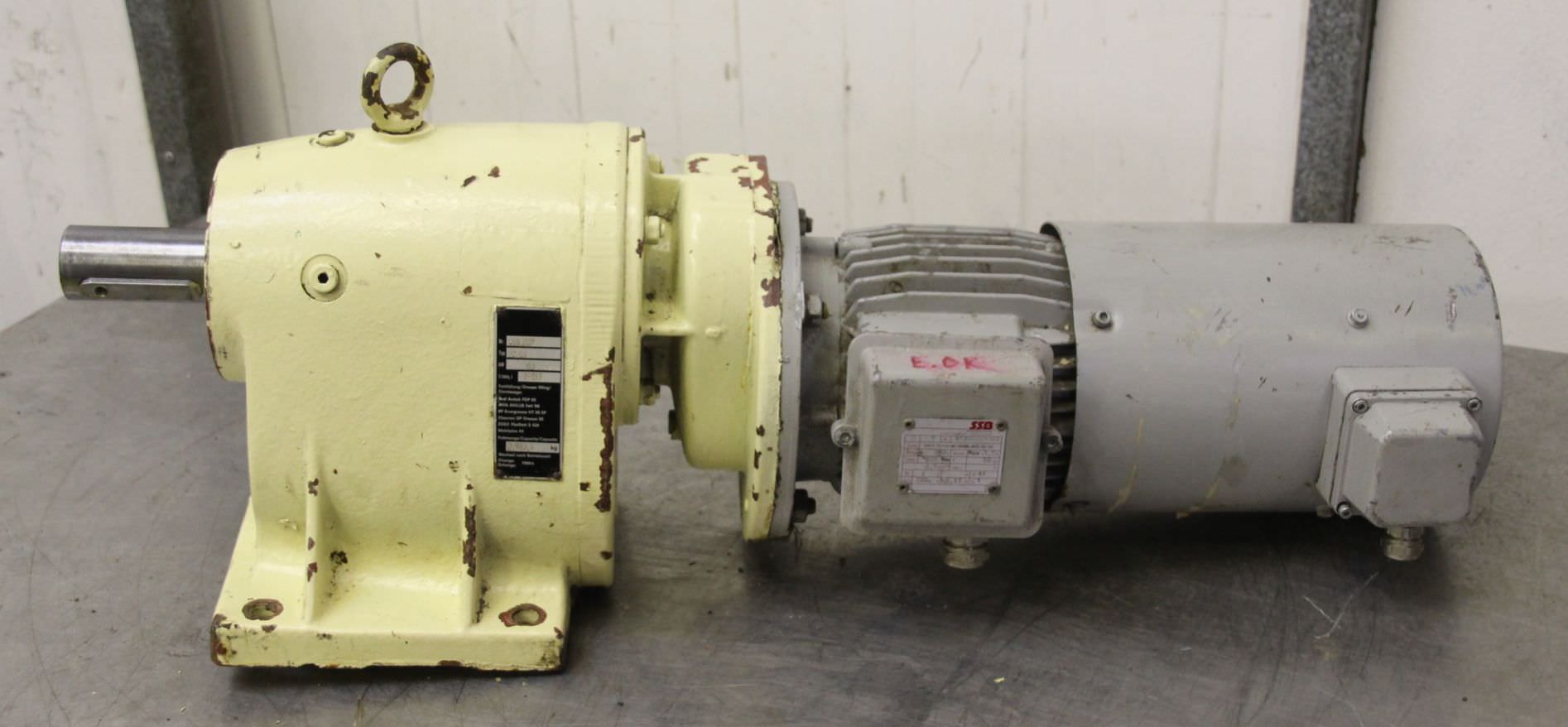 gear motor, electric motor, electric gear motor, adjustable gear motor, variable speed gear motor-Manufacturer: Lenze HEW, adjustable geared motor-Adjustment gear: Lenze type 11.433.16.16.2 1/88 17-3.3 rpm-Gearbox: Lenze Type 12.603.16.1.1-Engine HEW type: EEXF 90L/6 0.95 kW-Shaft: Ø 40 x 80 mm-Design: B3-Protection class: IP 54-Dimensions: 680/490/H320 mm-Weight: 66 kg