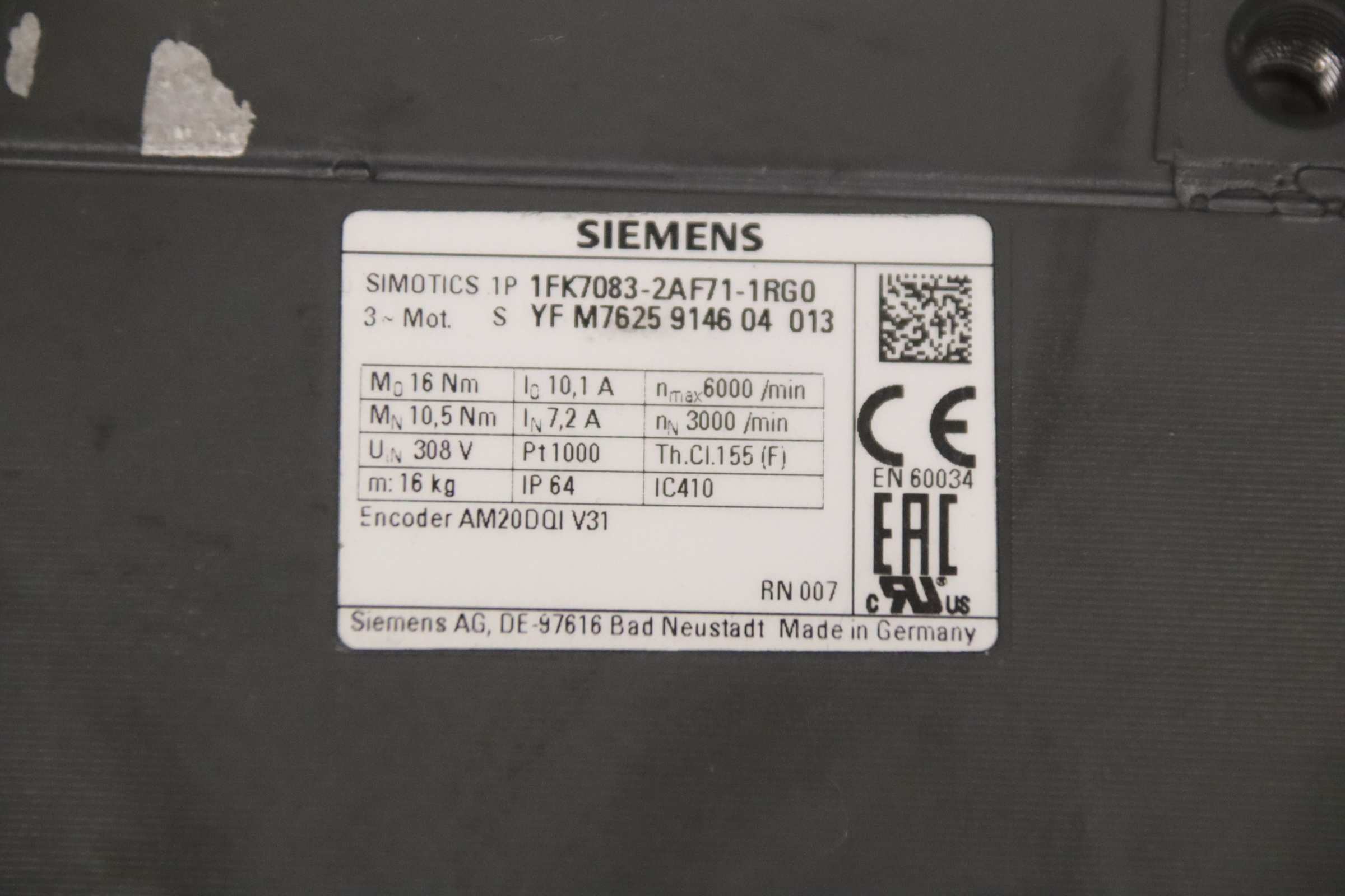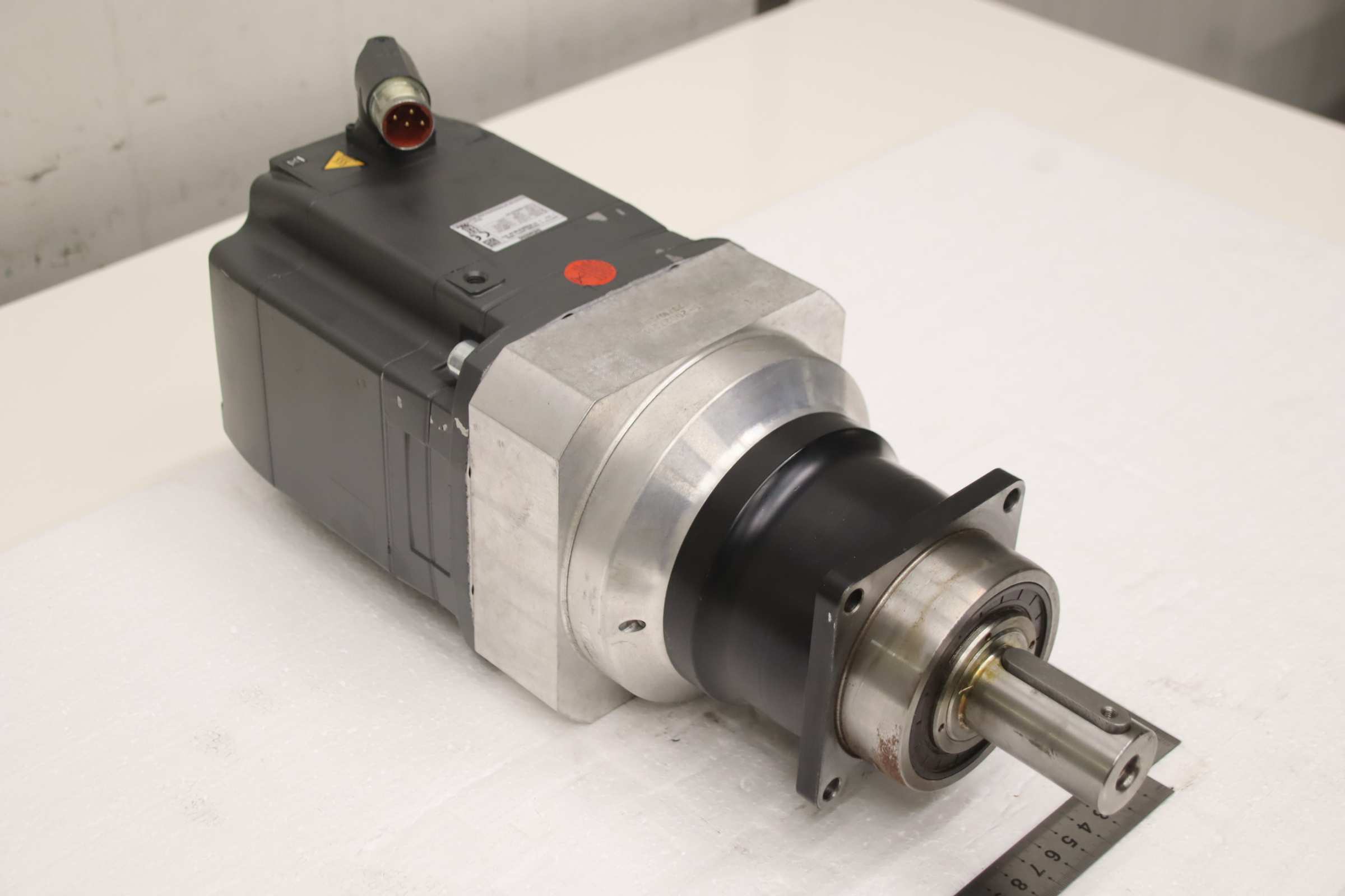 Servo motor, electric motor, DC motor, servo geared motor, synchronous motor -Manufacturer: Siemens Wittenstein, servo geared motor -Synchronous motor: Siemens type 1FK7083-2AF71-1RG0 -Voltage: 308 V -Speed: 3000 / max: 6000 rpm -Gearbox: Wittenstein SP 100S-MC1-4 -1K1-2K i= 4 -Shaft: Ø 32 x 60 mm -Number: 5x geared motors available -Price: per piece -Dimensions: 450/155/H200 mm -Weight: 25.1 kg/pc.
