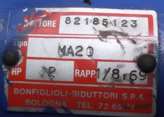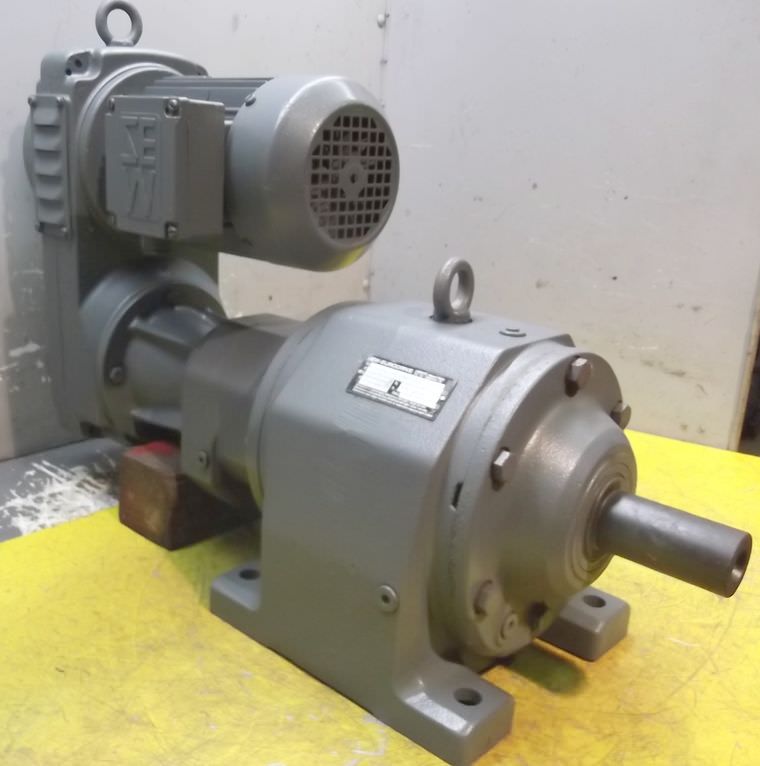 Gear motor, electric motor, three-phase motor, worm gear motor, electric gear motor -With external fan: 0.04 kW 2760 rpm -Electric motor speed: 3050 rpm -Translation: 1:7 -Speed gear output: 435 rpm -Power: 1.8 kw -Construction: -Hollow shaft diameter: Ø 28 mm -Dimensions: 650/300/H230 mm -Weight: 44 kg