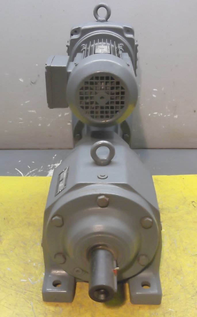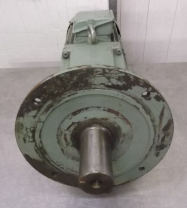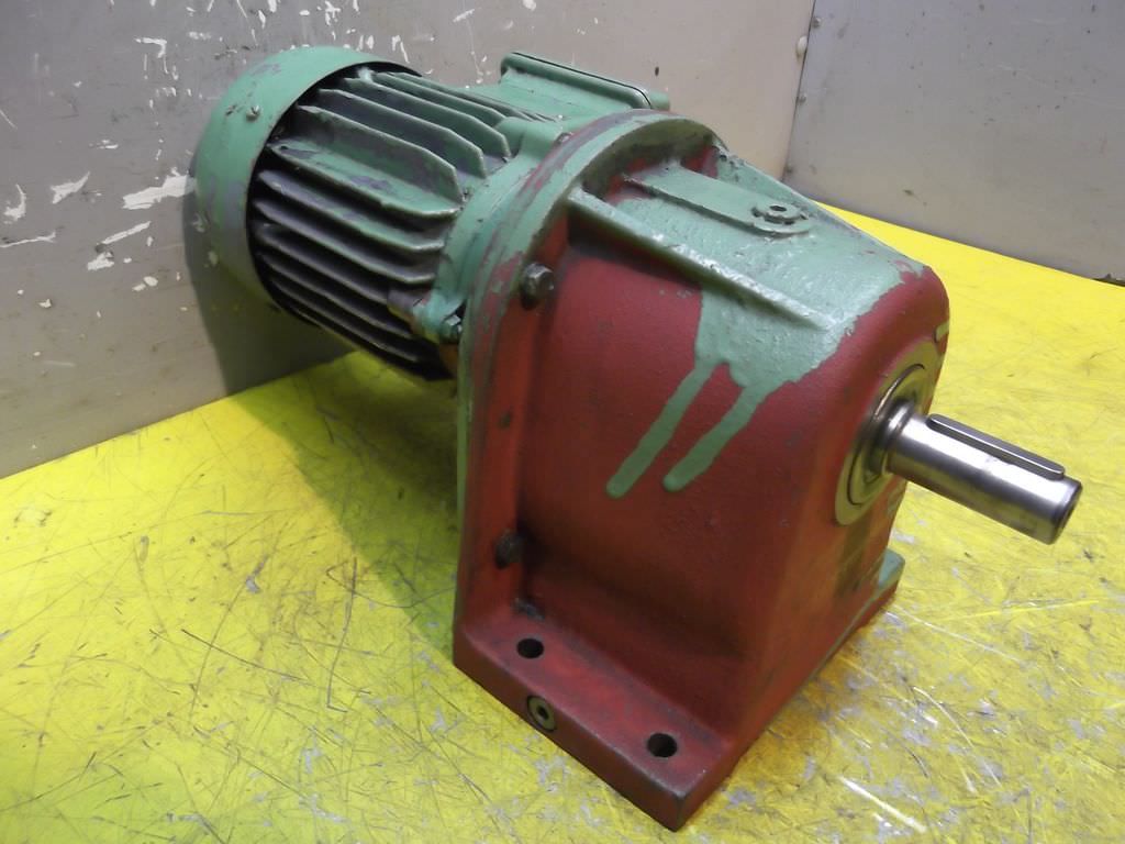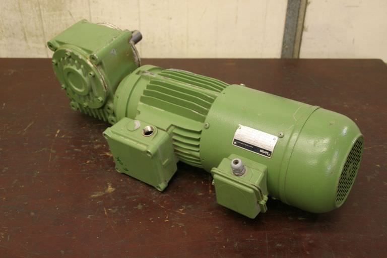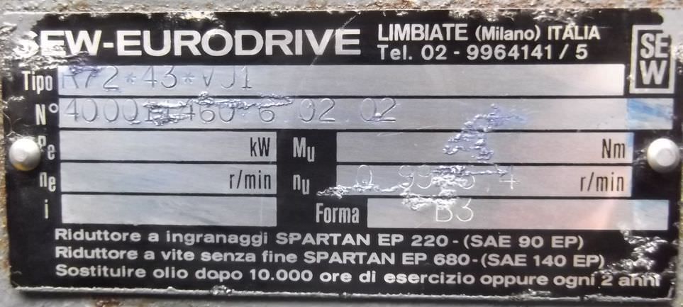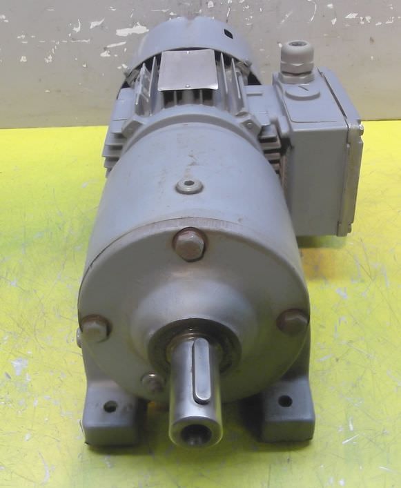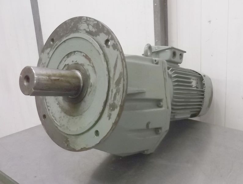 adjustable gear motor, variable speed gear motor, electric motor-Manufacturer gearbox SEW type: R72-43-V01-Manufacturer motor SEW type: VUF1DT80K-6-Motor power: 0.37 kW-Speed range: 1.2-6 rpm-Motor: adjustable-Drive shaft: Ø 40 mm-Construction: B3-Number: 2 motors available-Price: per piece-Dimensions: 700/230/H410 mm-Weight: 70 kg