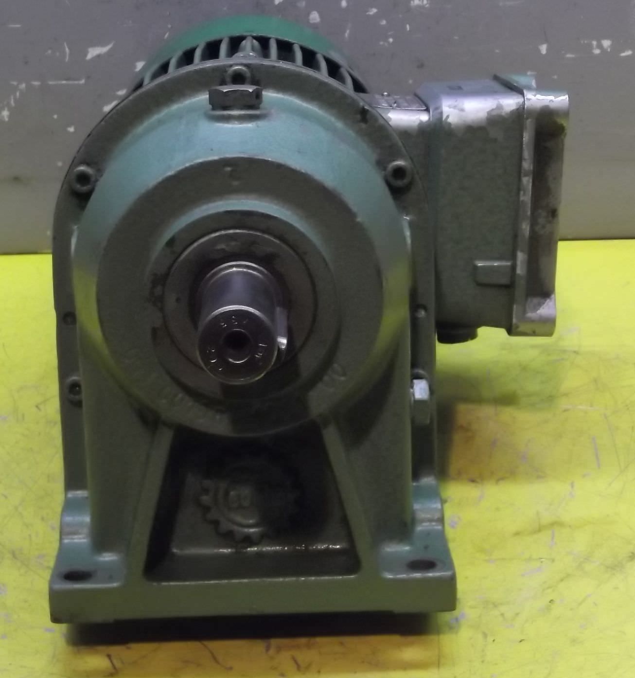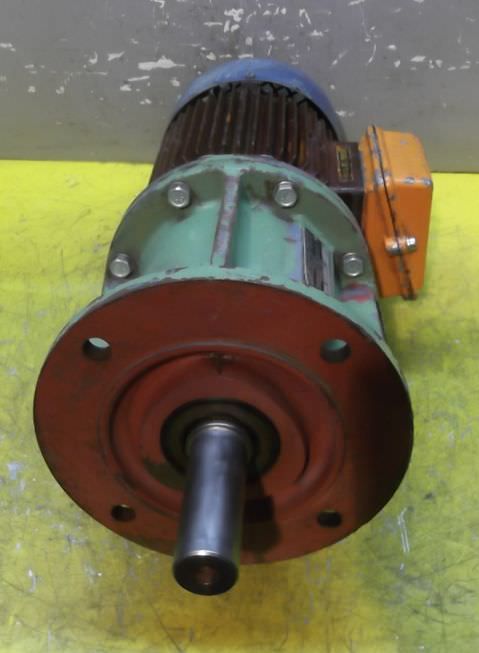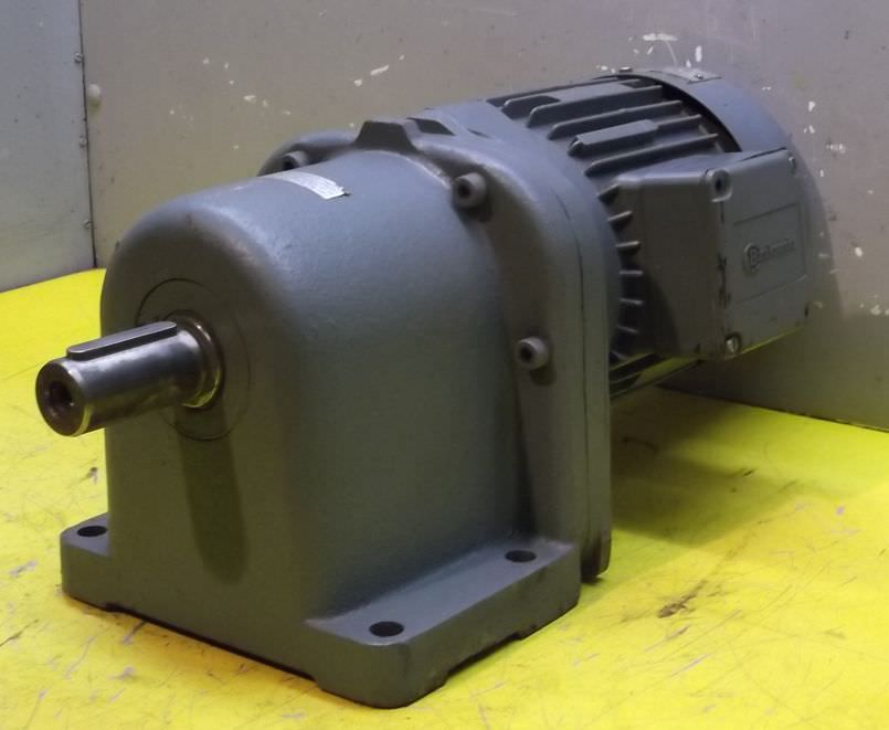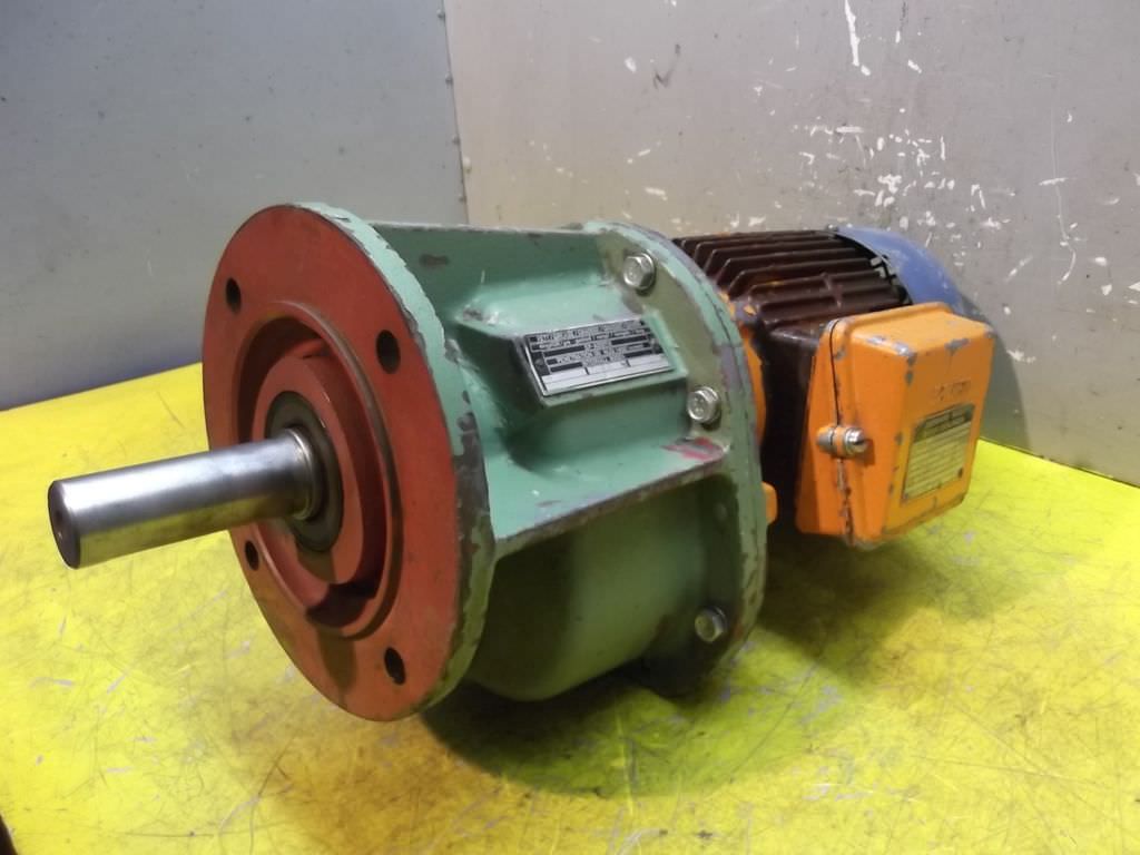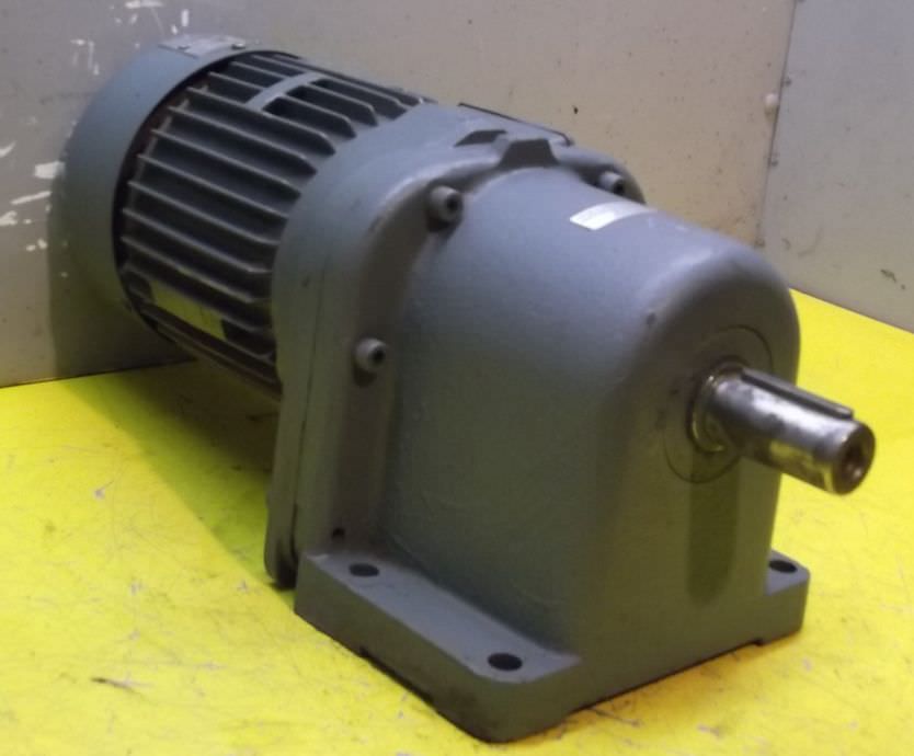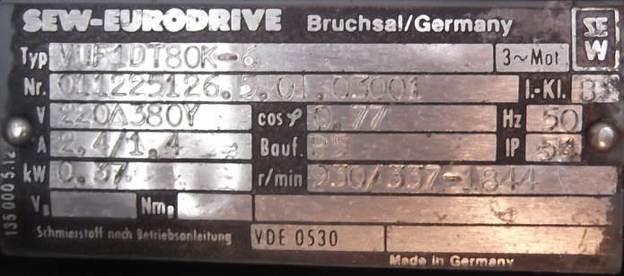 adjustable gear motor, variable speed gear motor, electric motor-Manufacturer gearbox SEW type: R72-43-V01-Manufacturer motor SEW type: VUF1DT80K-6-Motor power: 0.37 kW-Speed range: 1.2-6 rpm-Motor: adjustable-Drive shaft: Ø 40 mm-Construction: B3-Number: 2 motors available-Price: per piece-Dimensions: 700/230/H410 mm-Weight: 70 kg