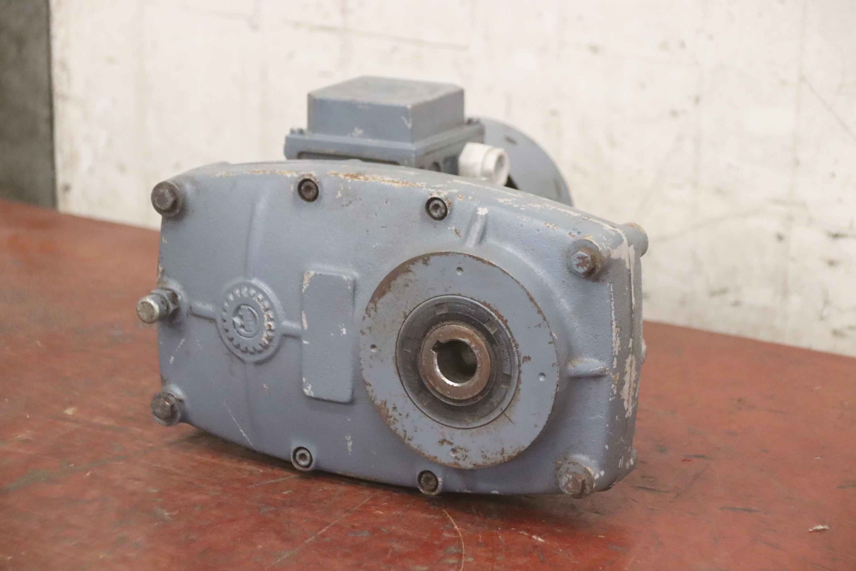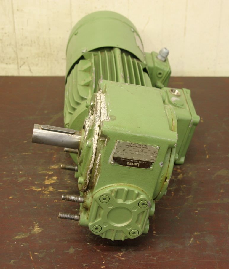 Gear motor, electric motor, three-phase motor, angular gear motor-Speed: 8.8 rpm-Power: 0.12 kW-Construction: B5 angle-Diameter shaft: Ø 20 mm-Protection class: IP 54-Price: per piece-Number: 2x available-Dimensions: 330/170/H140 mm-Weight per piece: 13 kg