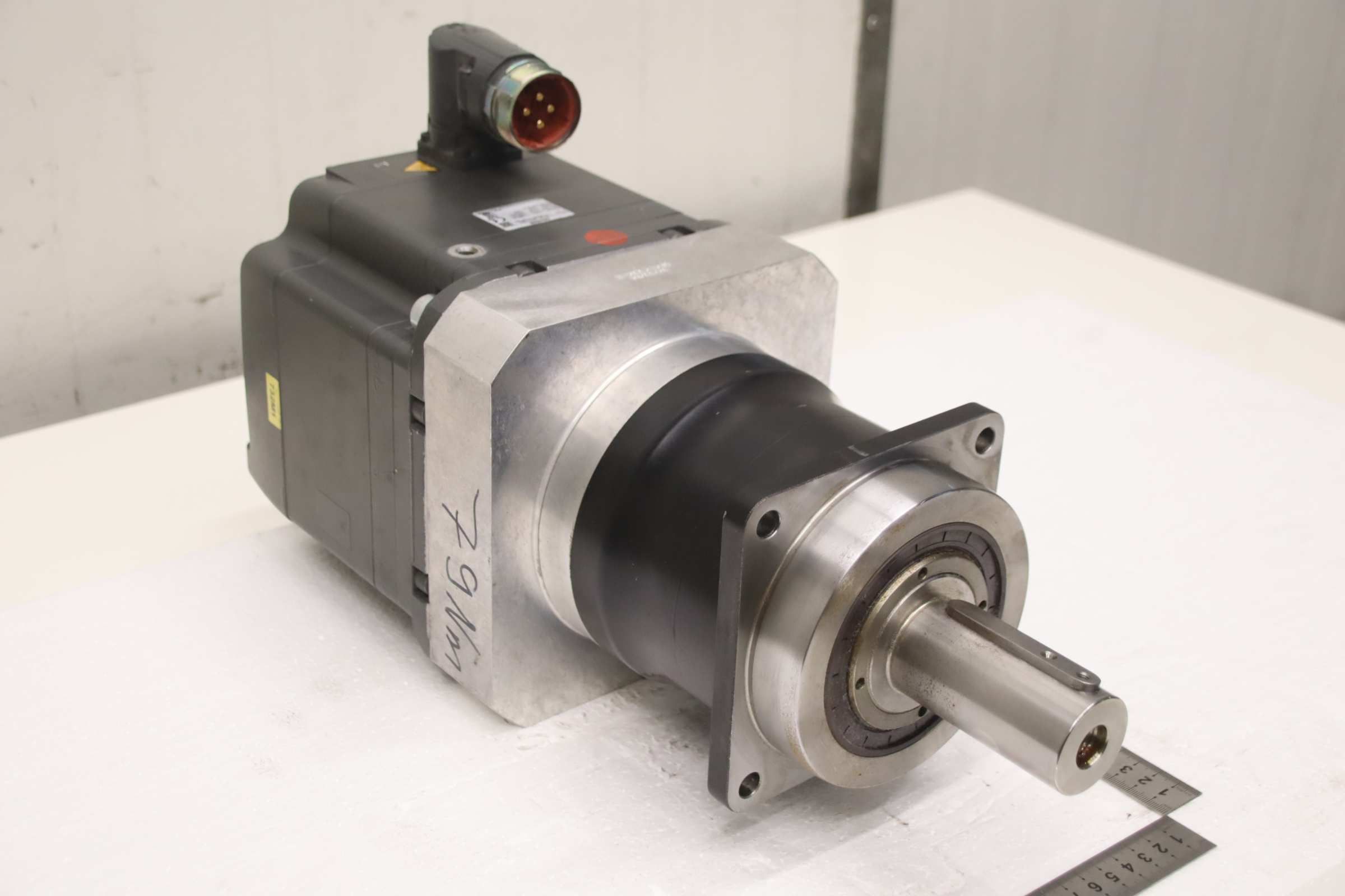 Servo motor, electric motor, DC motor, servo geared motor, synchronous motor -Manufacturer: Siemens Wittenstein, servo geared motor -Synchronous motor: Siemens type 1FK7101-2AF71-1RG0 -Voltage: 278 V -Gearbox: Wittenstein SP 140S-MC1-10 -1K1-2K i= 10 -Shaft: Ø 40 x 80 mm -Number: 2x geared motors available -Price: per piece -Dimensions: 490/190/H260 mm -Weight: 41.2 kg/pc.