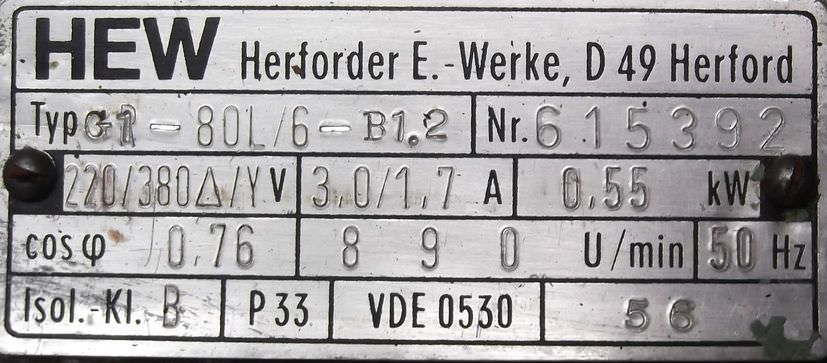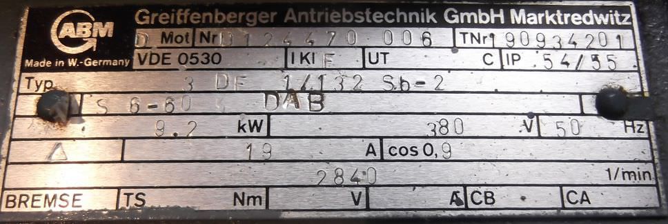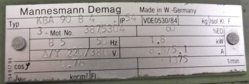 Three-phase motor, electric motor-Power: 5.2 kW-Speed: 1440 rpm-Shaft: Ø 38 mm-Construction: B3-Protection class: --Price: per piece-Number: 1x available-Dimensions: 450/340/H270 mm-Weight: 65 kg